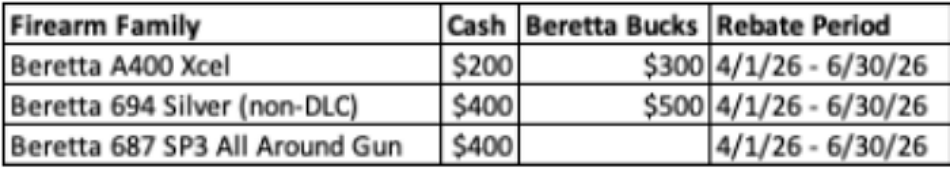 Beretta Sporting Rebate Apr 1st - Jun 30th