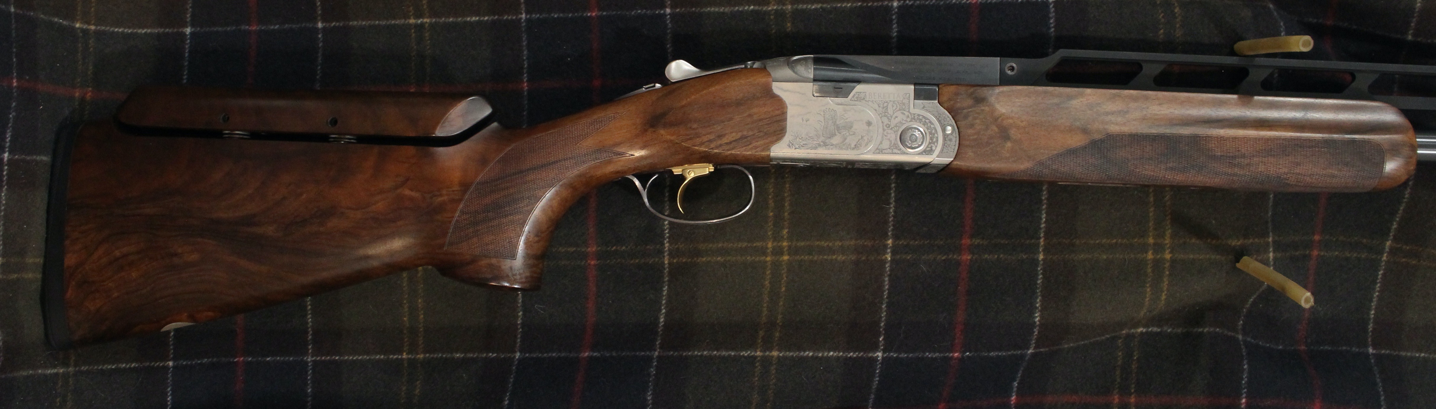 Silver Pigeon III Deluxe Trap combo - 12 gauge, 34" unsingle barrel and 32" over/under. Backbored Optima HP barrels with long forcing cones and 5 flush optima HP choke tubes. Monte carlo stock with Beretta B-Fast adjustable comb & palm swell. Stock dimensions are 1-5/8" drop across the comb and 2-5/16" at the base of the Monte Carlo. Average weight of guns 8 lbs 8 oz. Comes at a 14 5/8" length of pull with the thinner pad or 14 7/8" with the thicker of the two included pads. Same Internal parts as the 682E. Adjustable point of impact on the 34" unsingle barrel. The trigger is adjustable for length (finger comfort/grip size - moves about 1/8" forward or back). Comes in Beretta ABS plastic trap combo case.