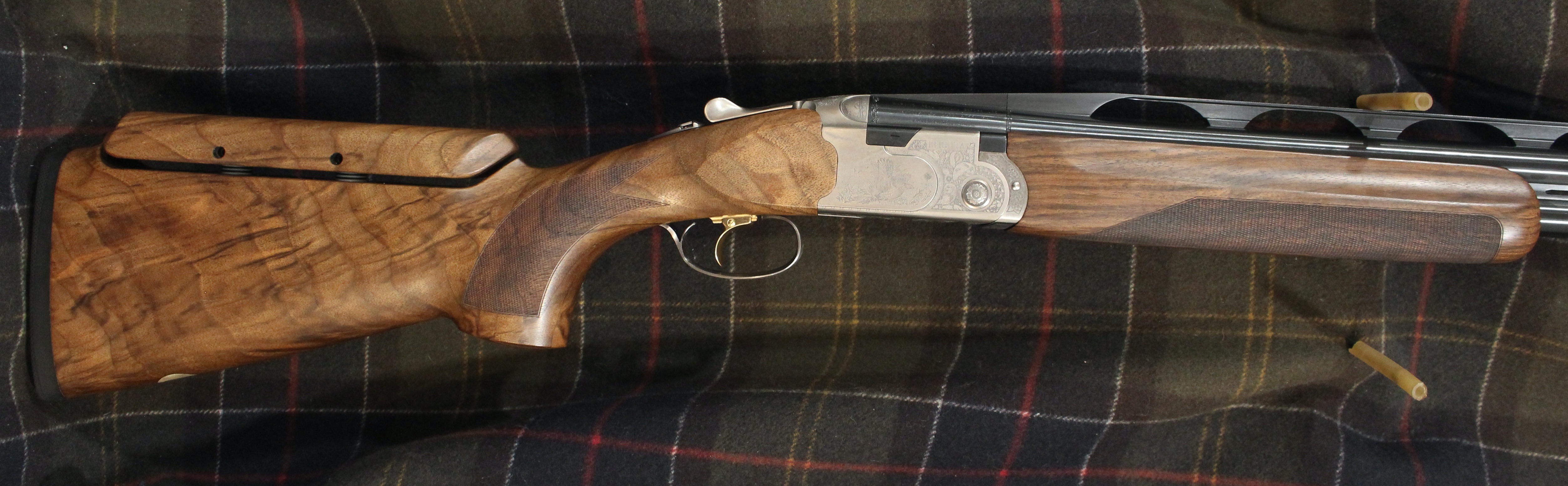 Silver Pigeon III Deluxe Trap combo - 12 gauge, 34" unsingle barrel and 32" over/under. Backbored Optima HP barrels with long forcing cones and 5 flush optima HP choke tubes. Monte carlo stock with Beretta B-Fast adjustable comb & palm swell. Stock dimensions are 1-5/8" drop across the comb and 2-5/16" at the base of the Monte Carlo. Average weight of guns 8 lbs 8 oz. Two butt pads included. Same Internal parts as the 682E. Adjustable point of impact on the 34" unsingle barrel. The trigger is adjustable for length (finger comfort/grip size - moves about 1/8" forward or back). Comes in Beretta ABS plastic trap combo case.