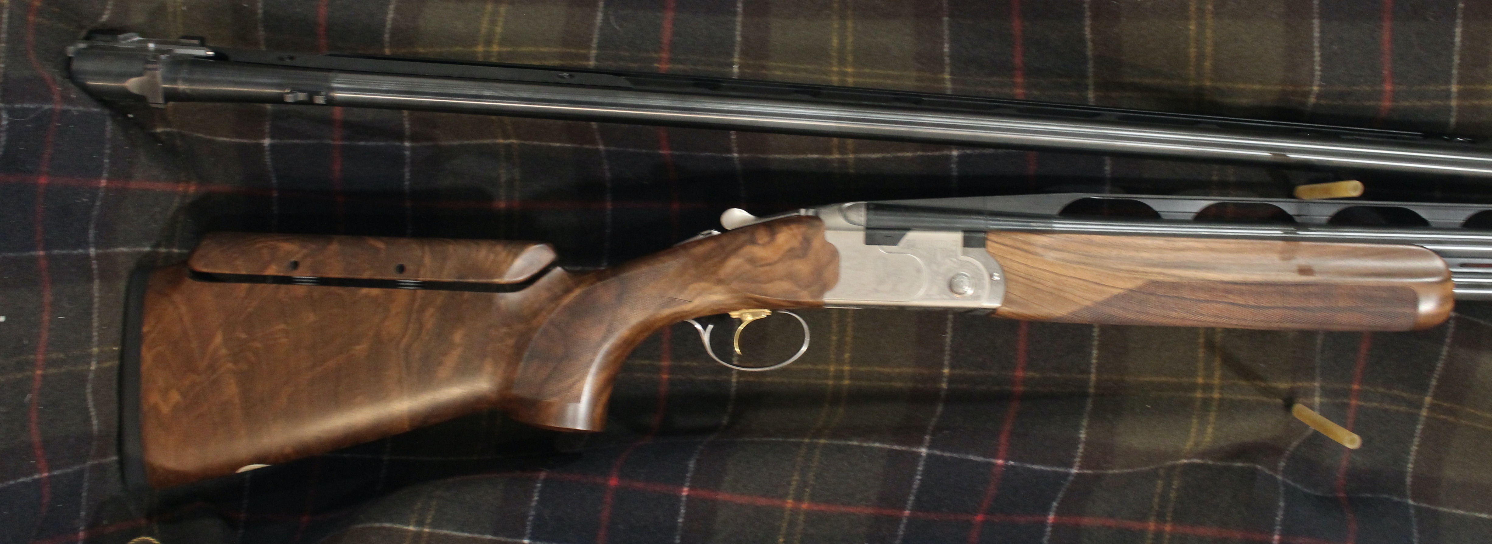 Silver Pigeon III Deluxe Trap combo - 12 gauge, 34" unsingle barrel and 32" over/under. Backbored Optima HP barrels with long forcing cones and 5 flush optima HP choke tubes. Monte carlo stock with Beretta B-Fast adjustable comb & palm swell. Stock dimensions are 1-5/8" drop across the comb and 2-5/16" at the base of the Monte Carlo. Average weight of guns 8 lbs 8 oz. Two butt pads included. Same Internal parts as the 682E. Adjustable point of impact on the 34" unsingle barrel. The trigger is adjustable for length (finger comfort/grip size - moves about 1/8" forward or back). Comes in Beretta ABS plastic trap combo case.