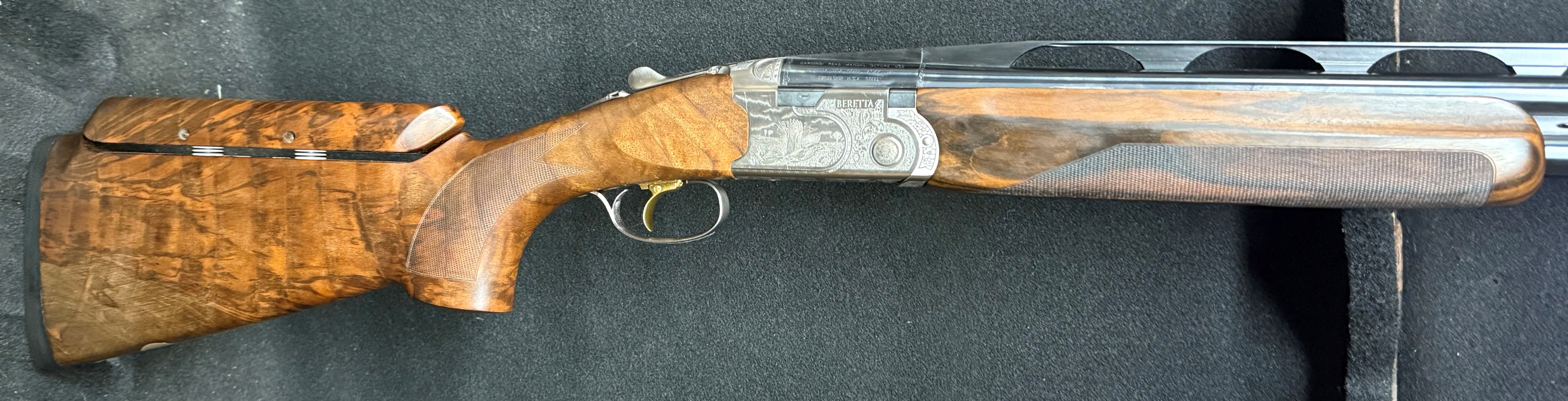 Silver Pigeon III Deluxe Trap combo - 12 gauge, 34" unsingle barrel and 32" over/under. Backbored Optima HP barrels with long forcing cones and 5 flush optima HP choke tubes. Monte carlo stock with Beretta B-Fast adjustable comb & palm swell. Stock dimensions are 1-5/8" drop across the comb and 2-5/16" at the base of the Monte Carlo. Average weight of guns 8 lbs 8 oz. Two butt pads included. Same Internal parts as the 682E. Adjustable point of impact on the 34" unsingle barrel. The trigger is adjustable for length (finger comfort/grip size - moves about 1/8" forward or back). Comes in Beretta ABS plastic trap combo case.