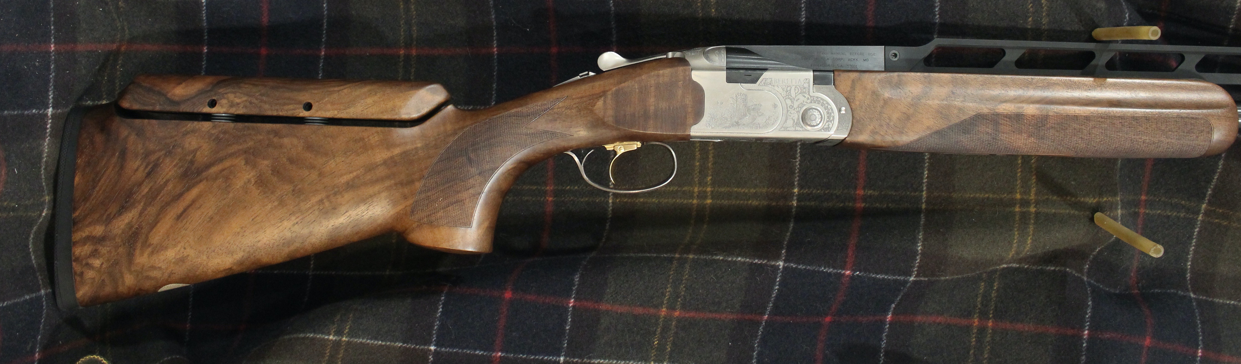 Silver Pigeon III Deluxe Trap combo - 12 gauge, 34" unsingle barrel and 32" over/under. Backbored Optima HP barrels with long forcing cones and 5 flush optima HP choke tubes. Monte carlo stock with Beretta B-Fast adjustable comb & palm swell. Stock dimensions are 1-5/8" drop across the comb and 2-5/16" at the base of the Monte Carlo. Average weight of guns 8 lbs 8 oz. Two butt pads included. Same Internal parts as the 682E. Adjustable point of impact on the 34" unsingle barrel. The trigger is adjustable for length (finger comfort/grip size - moves about 1/8" forward or back). Comes in Beretta ABS plastic trap combo case.