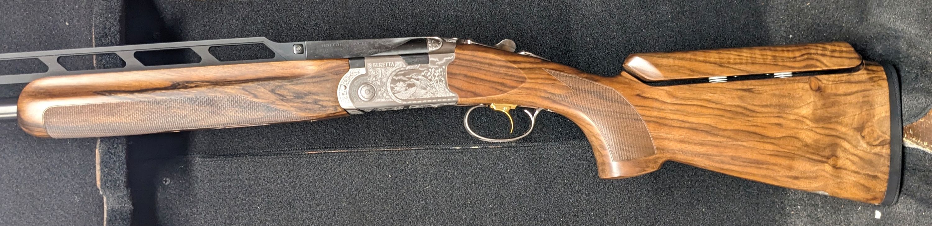 Silver Pigeon III Deluxe Trap combo - 12 gauge, 34" unsingle barrel and 32" over/under. Backbored Optima HP barrels with long forcing cones and 5 flush optima HP choke tubes. Monte carlo stock with Beretta B-Fast adjustable comb & palm swell. Stock dimensions are 1-5/8" drop across the comb and 2-5/16" at the base of the Monte Carlo. Average weight of guns 8 lbs 8 oz. Comes at a 14 5/8" length of pull with the thinner pad or 14 7/8" with the thicker of the two included pads. Same Internal parts as the 682E. Adjustable point of impact on the 34" unsingle barrel. The trigger is adjustable for length (finger comfort/grip size - moves about 1/8" forward or back). Comes in Beretta ABS plastic trap combo case.