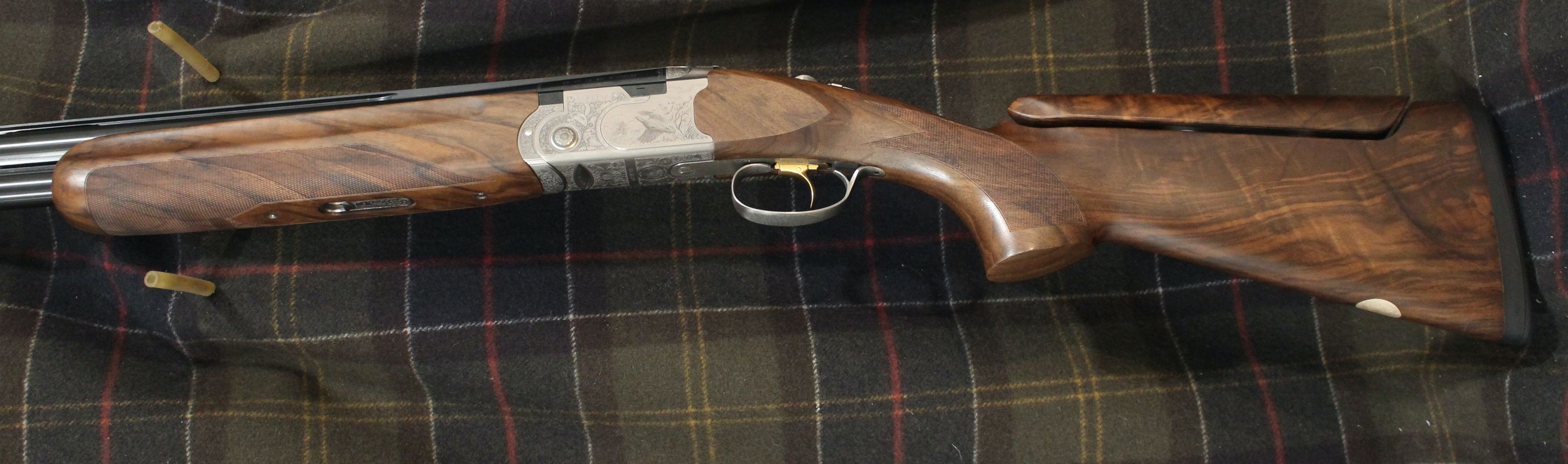 Beretta 687 Signature Deluxe Silver Pigeon III Sporting. Comes with our new logo and engraving on the SP3 receiver, Optima HP sporting barrels, beavertail forearm, upgraded EELL wood with B-Fast Adjustable Comb on a traditional drop away, sporting, style stock. Approximate drop dimensions of 1 5/8" and 2 3/8". Features 3 position trigger, and palm swell. Includes 5 extended Optima HP chokes, and combination lock case.