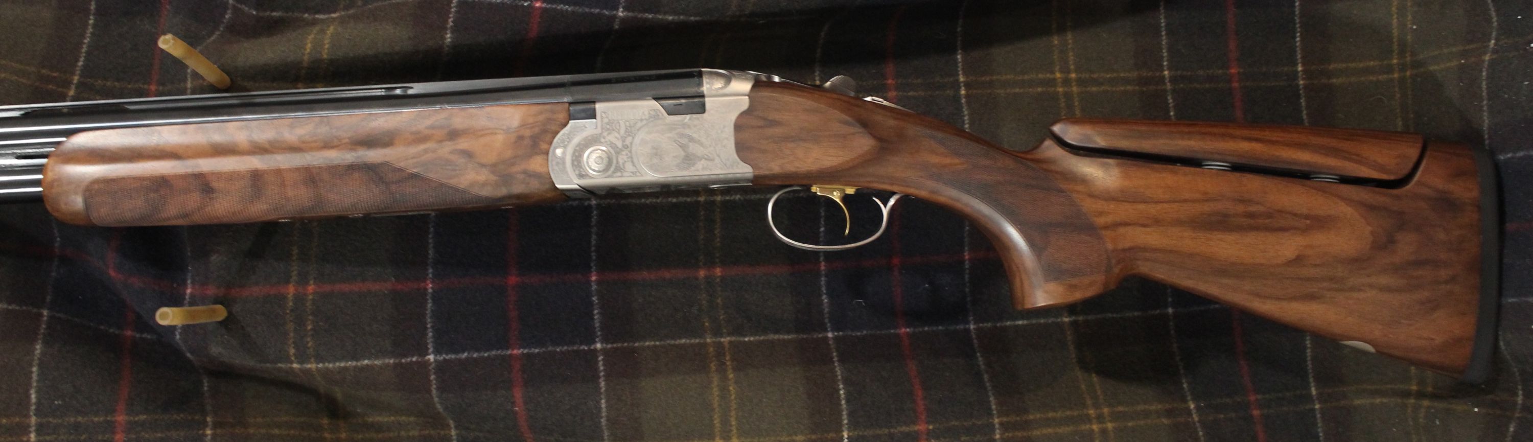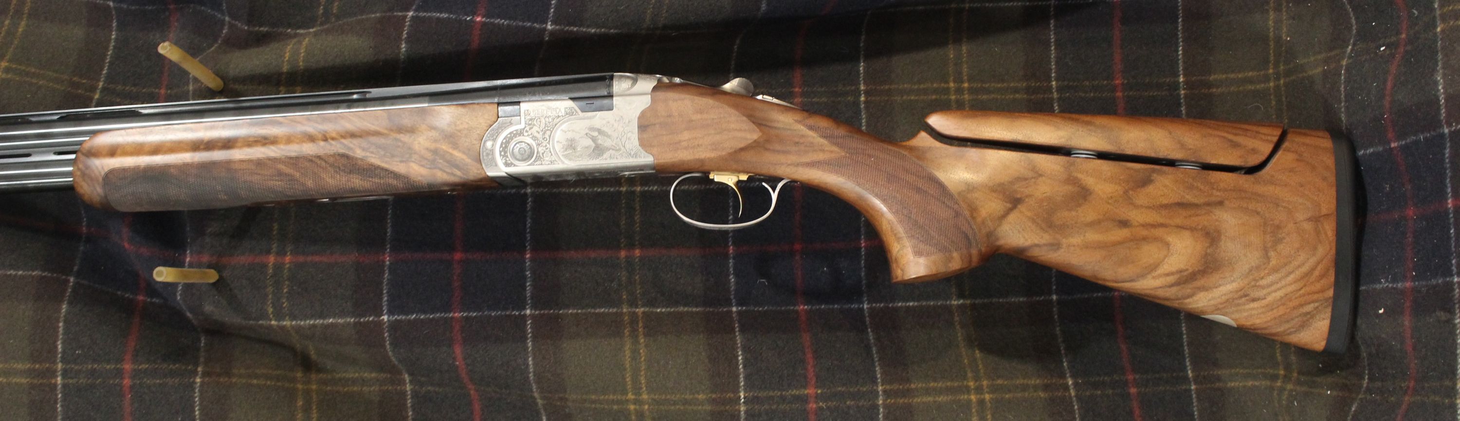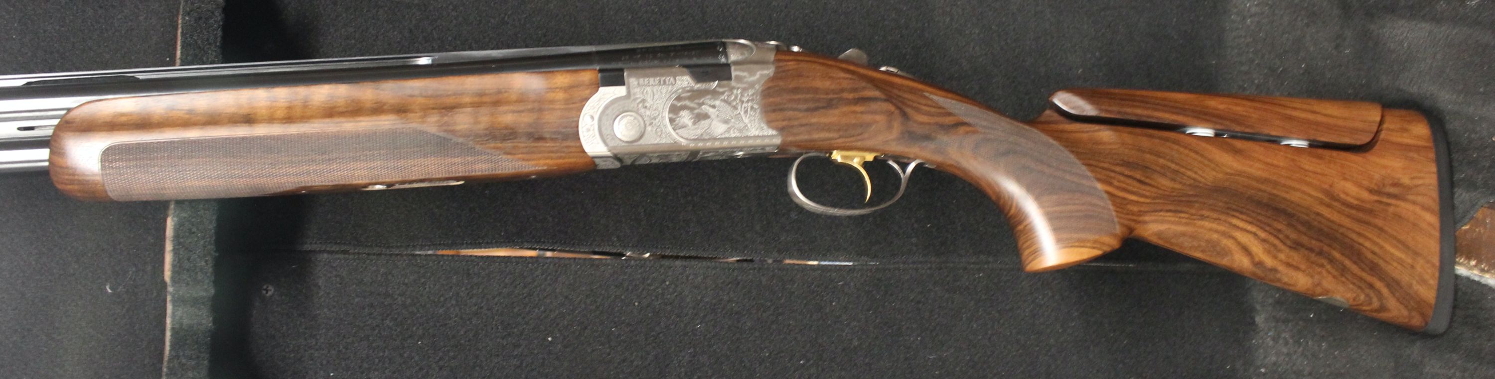 Beretta 687 Signature Deluxe Silver Pigeon III Sporting. Comes with our new logo and engraving on the SP3 receiver, Optima HP sporting barrels, beavertail forearm, upgraded EELL wood with B-FAST Adjustable Comb, and traditional drop away, sporting, style stock. Approximate drop dimensions of 1 5/8" and 2 3/8". Features 3 position trigger, and palm swell. Includes 5 extended Optima HP chokes, and combination lock case.