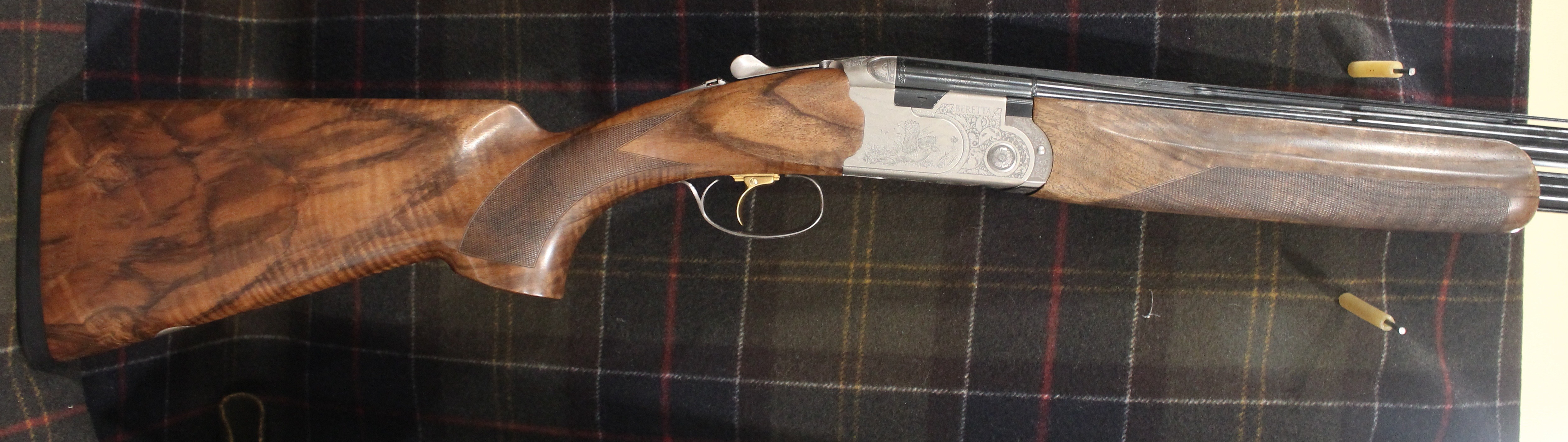 Beretta 687 Signature Deluxe Silver Pigeon III Sporting. Comes with our new logo and engraving on the SP3 receiver, Optima HP sporting barrels, beavertail forearm, upgraded EELL wood, and traditional drop away sporting style stock. Features 3 position trigger, and palm swell. Includes 5 extended Optima HP chokes, and combination lock case.