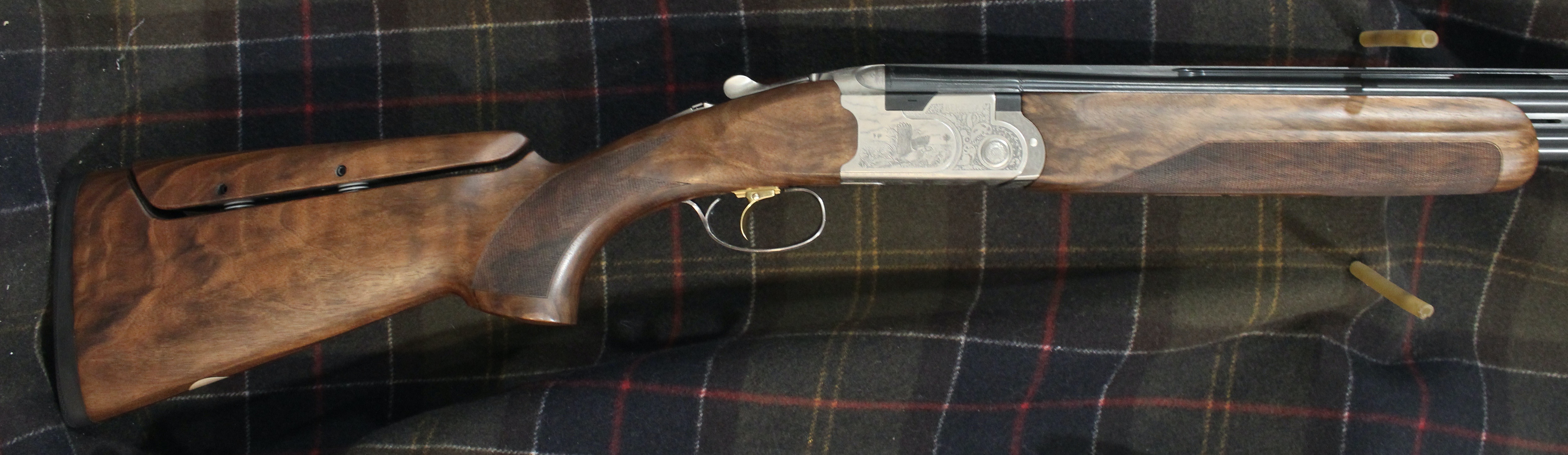 Beretta 687 Signature Deluxe Silver Pigeon III Sporting. Comes with our new logo and engraving on the SP3 receiver, Optima HP sporting barrels, beavertail forearm, upgraded EELL wood with B-FAST Adjustable Comb, and traditional drop away, sporting, style stock. Approximate drop dimensions of 1 5/8" and 2 3/8". Features 3 position trigger, and palm swell. Includes 5 extended Optima HP chokes, and combination lock case.