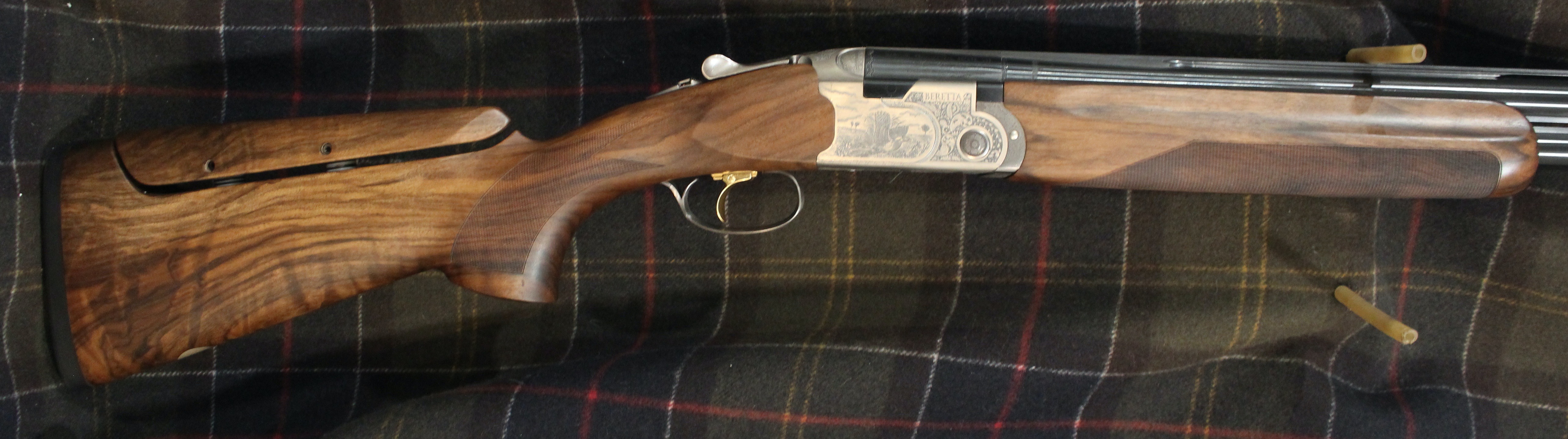 Beretta 687 Signature Deluxe Silver Pigeon III Sporting. Comes with our new logo and engraving on the SP3 receiver, Optima HP sporting barrels, beavertail forearm, upgraded EELL wood with B-Fast Adjustable Comb on a traditional drop away, sporting, style stock. Approximate drop dimensions of 1 5/8" and 2 3/8". Features 3 position trigger, and palm swell. Includes 5 extended Optima HP chokes, and combination lock case.