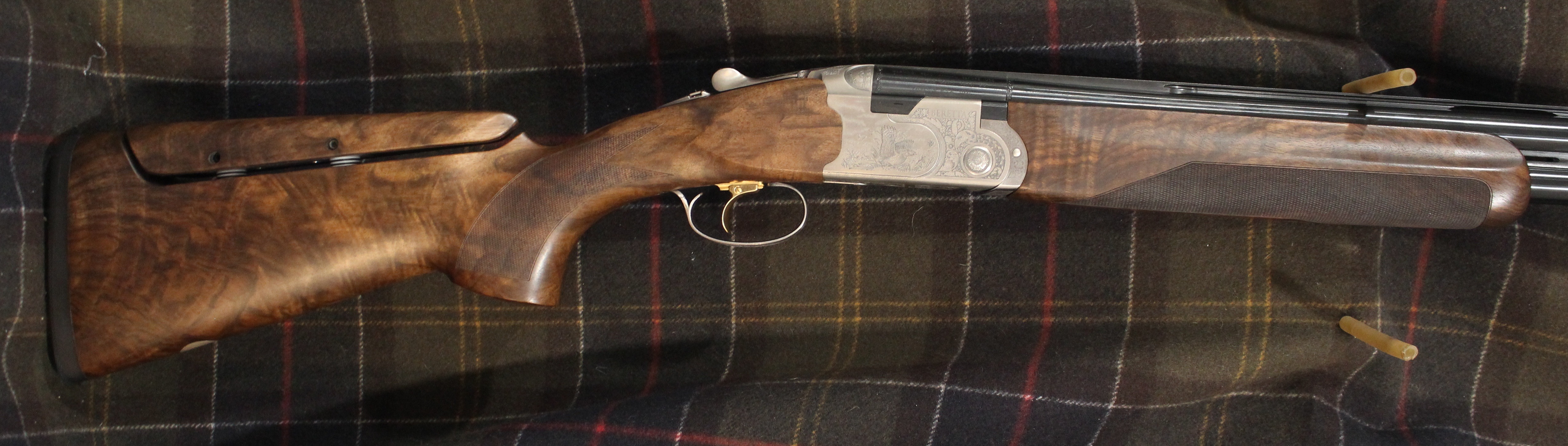 Beretta 687 Signature Deluxe Silver Pigeon III Sporting. Comes with our new logo and engraving on the SP3 receiver, Optima HP sporting barrels, beavertail forearm, upgraded EELL wood with B-FAST Adjustable Comb, and traditional drop away, sporting, style stock. Approximate drop dimensions of 1 5/8" and 2 3/8". Features 3 position trigger, and palm swell. Includes 5 extended Optima HP chokes, and combination lock case.
