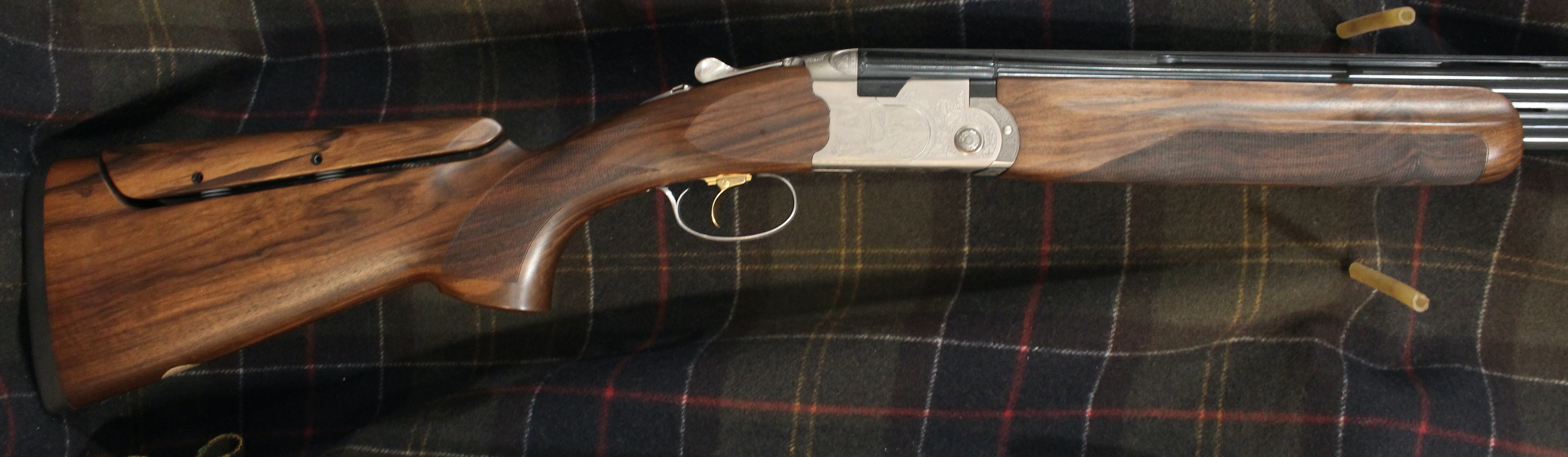 Beretta 687 Signature Deluxe Silver Pigeon III Sporting. Comes with our new logo and engraving on the SP3 receiver, Optima HP sporting barrels, beavertail forearm, upgraded EELL wood with B-FAST Adjustable Comb, and traditional drop away, sporting, style stock. Approximate drop dimensions of 1 5/8" and 2 3/8". Features 3 position trigger, and palm swell. Includes 5 extended Optima HP chokes, and combination lock case.