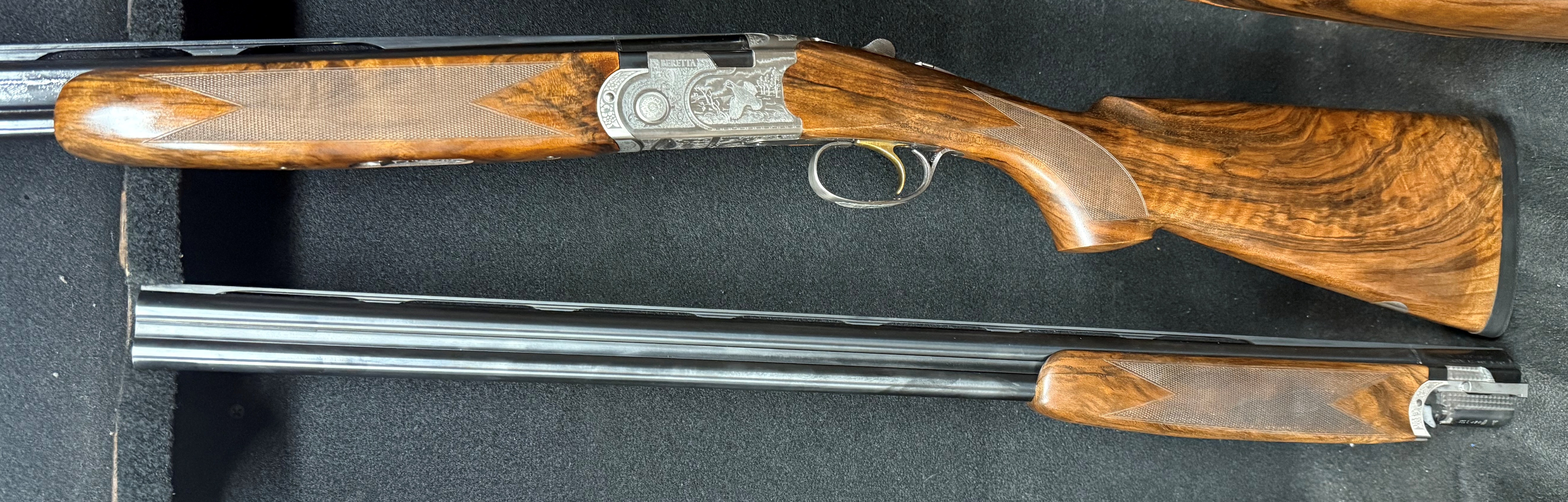 Silver Pigeon 3 Signature Deluxe Field Combo - 28 & 410 gauge with 28" barrels, Deluxe engraving, automatic field safety, upgraded EELL wood, comes in Beretta case with 5 flush Optima HP choke tubes for the 28ga and 5 flush Mobil chokes for the 410.