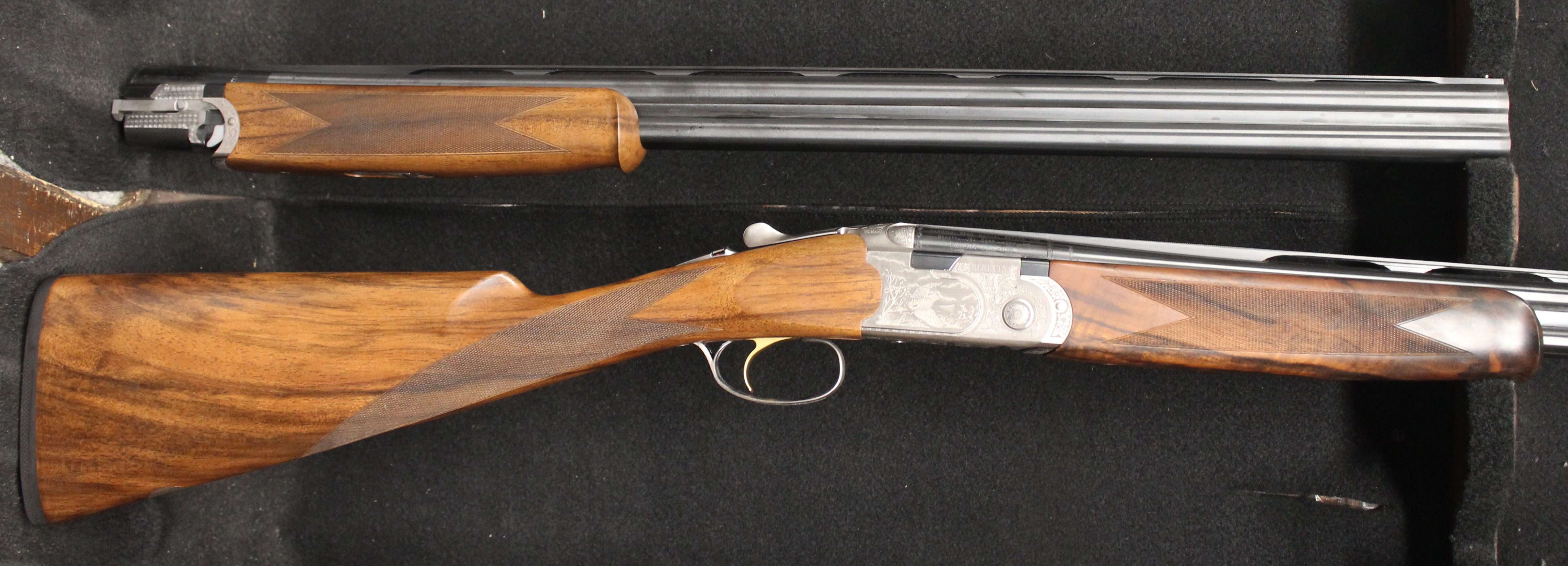 Silver Pigeon 3 Signature Deluxe Field Combo - 20 & 28 gauge with 28" barrels, Deluxe engraving, automatic field safety, upgraded EELL wood with Straight English grip, comes in Beretta case with 5 flush Optima HP choke tubes for each gauge.
