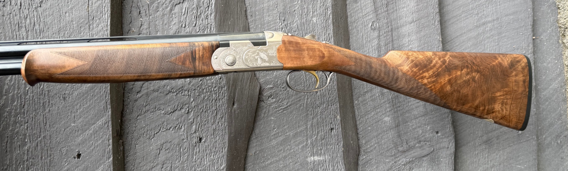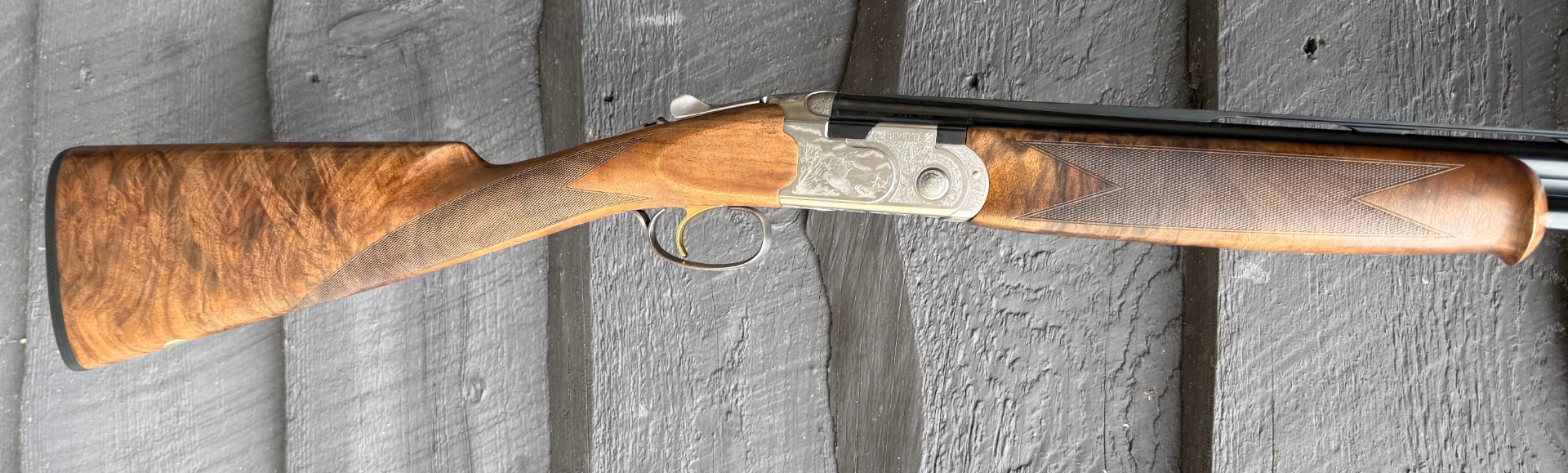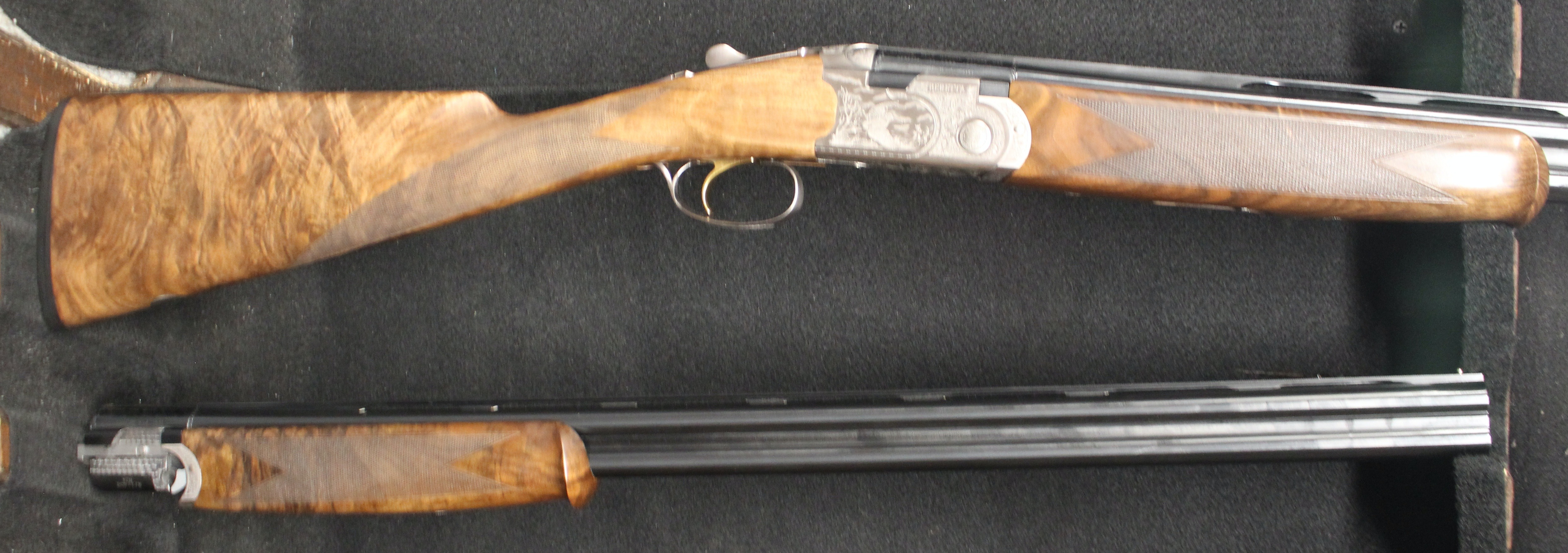 Silver Pigeon 3 Signature Deluxe Field Combo - 20 & 28 gauge with 28" barrels, Deluxe engraving, automatic field safety, LUSSO Wood Upgrade with Straight English grip, comes in Beretta case with 5 flush Optima HP choke tubes for each gauge.