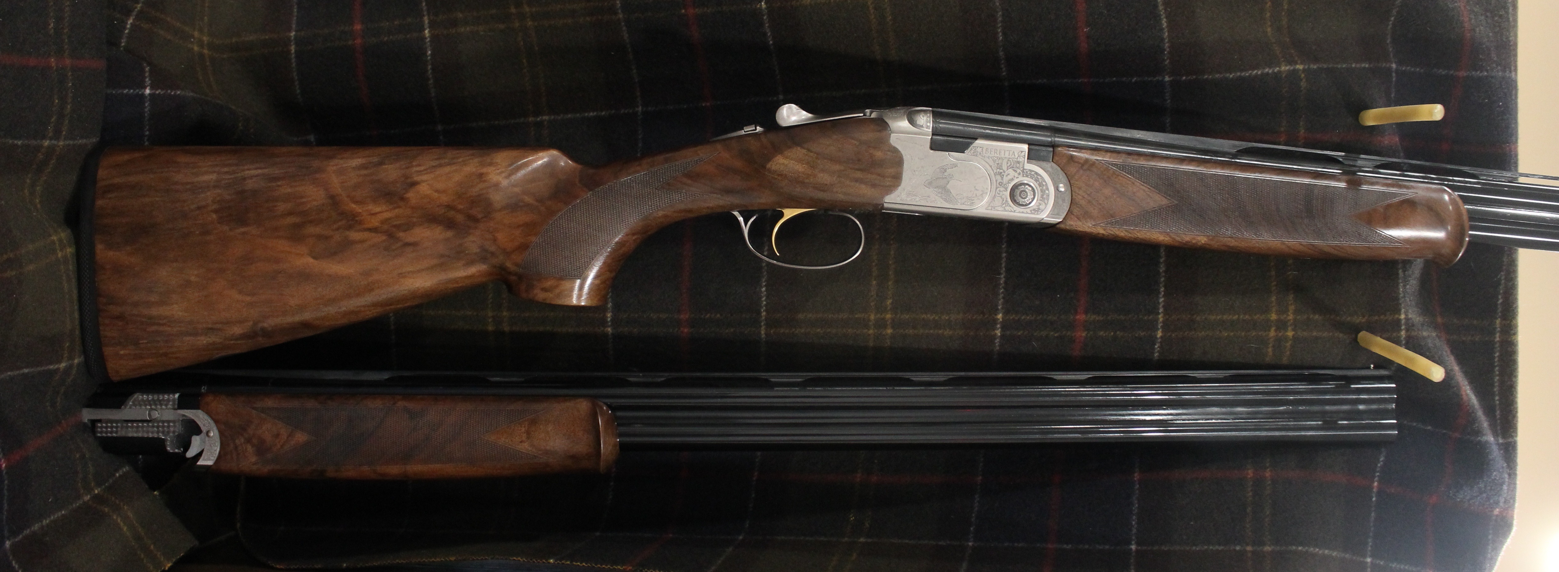 Silver Pigeon 3 Signature Deluxe Field Combo - 20 & 28 gauge with 28" barrels, Deluxe engraving, automatic field safety, upgraded EELL wood, comes in Beretta case with 5 flush Optima HP choke tubes for each gauge.