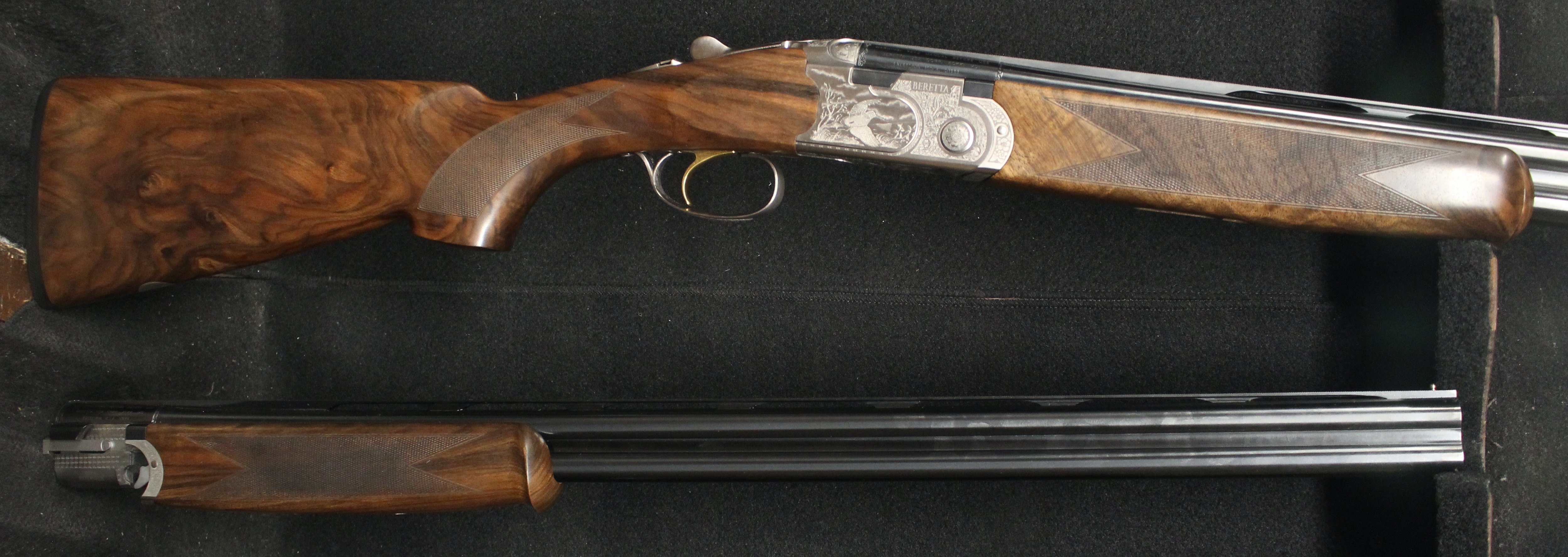 Silver Pigeon 3 Signature Deluxe Field Combo - 20 & 28 gauge with 28" barrels, Deluxe engraving, automatic field safety, upgraded EELL wood, comes in Beretta case with 5 flush Optima HP choke tubes for each gauge.