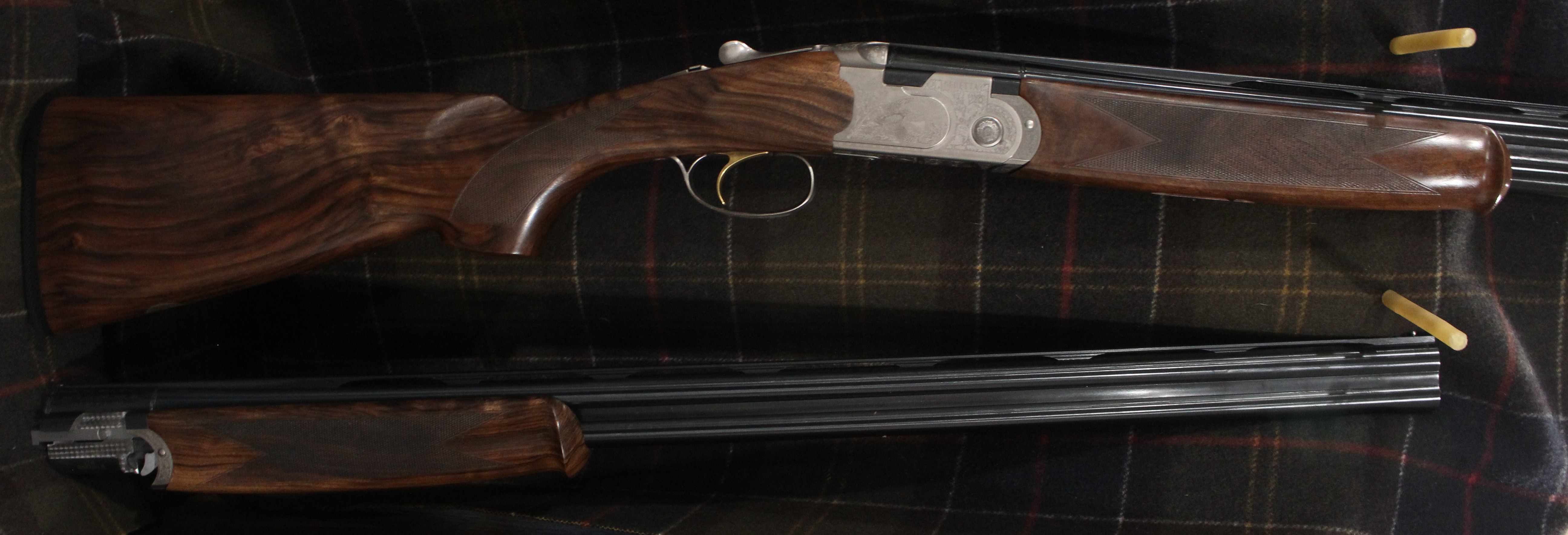 Silver Pigeon 3 Signature Deluxe Field Combo - 20 & 28 gauge with 28" barrels, Deluxe engraving, automatic field safety, upgraded EELL wood, comes in Beretta case with 5 flush Optima HP choke tubes for each gauge.