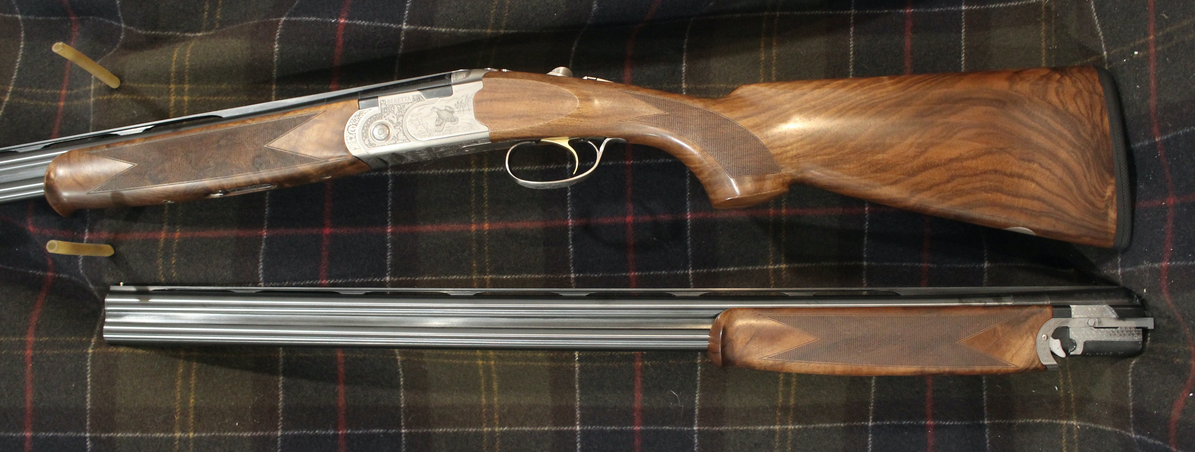 Silver Pigeon 3 Signature Deluxe Field Combo - 20 & 28 gauge with 28" barrels, Deluxe engraving, automatic field safety, upgraded EELL wood, comes in Beretta case with 5 flush Optima HP choke tubes for each gauge.
