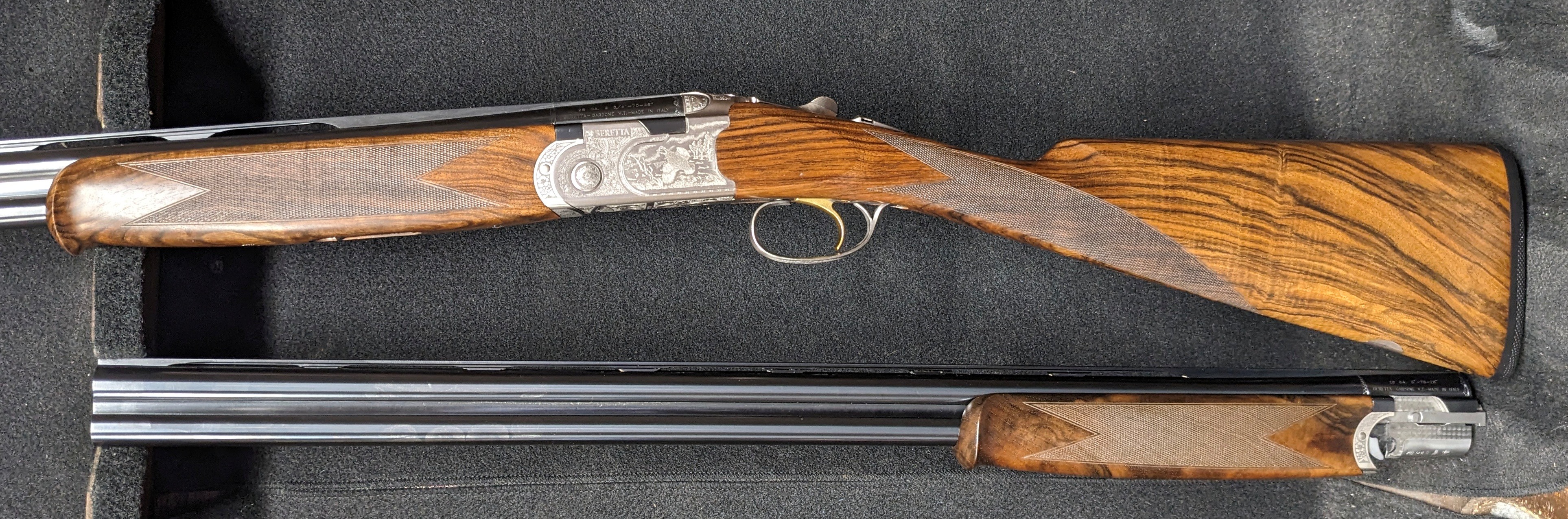 Silver Pigeon 3 Signature Deluxe Field Combo - 20 & 28 gauge with 28" barrels, Deluxe engraving, automatic field safety, upgraded EELL wood with Straight English grip, comes in Beretta case with 5 flush Optima HP choke tubes for each gauge.