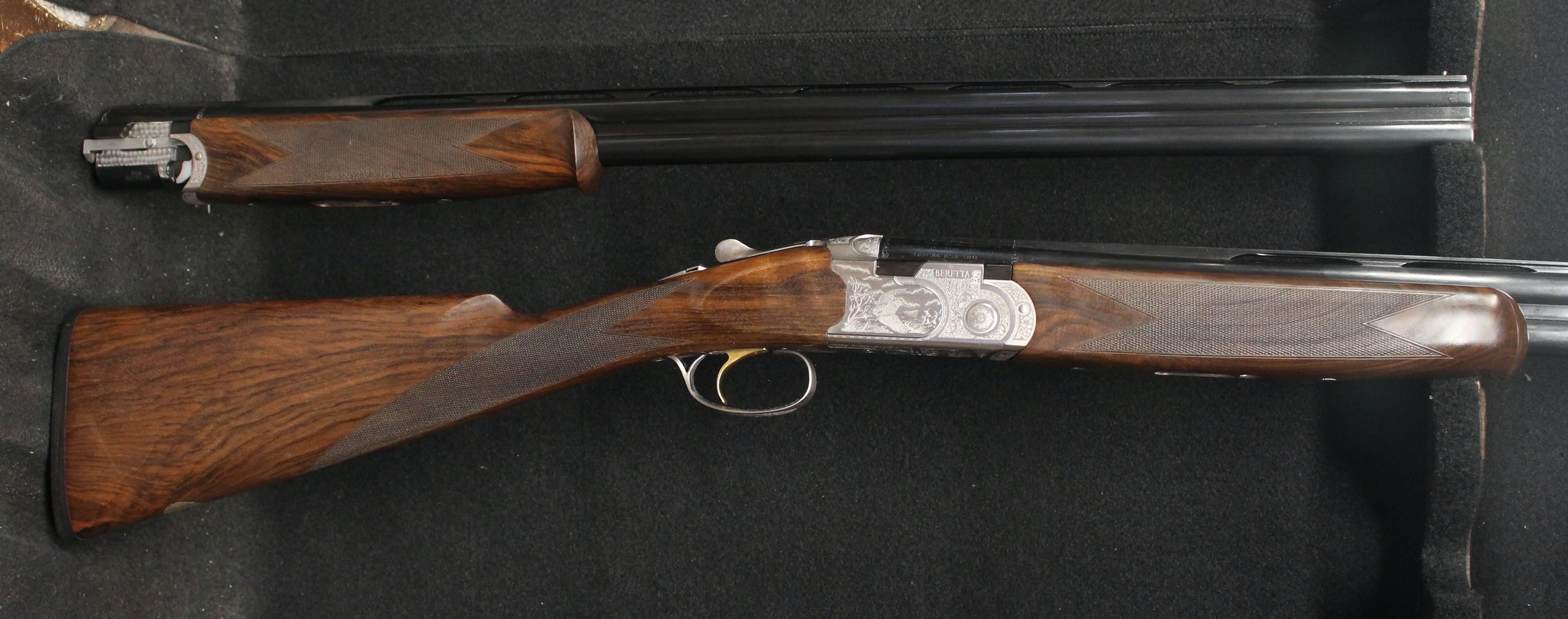 Silver Pigeon 3 Signature Deluxe Field Combo - 20 & 28 gauge with 28" barrels, Deluxe engraving, automatic field safety, upgraded EELL wood with Straight English grip, comes in Beretta case with 5 flush Optima HP choke tubes for each gauge.