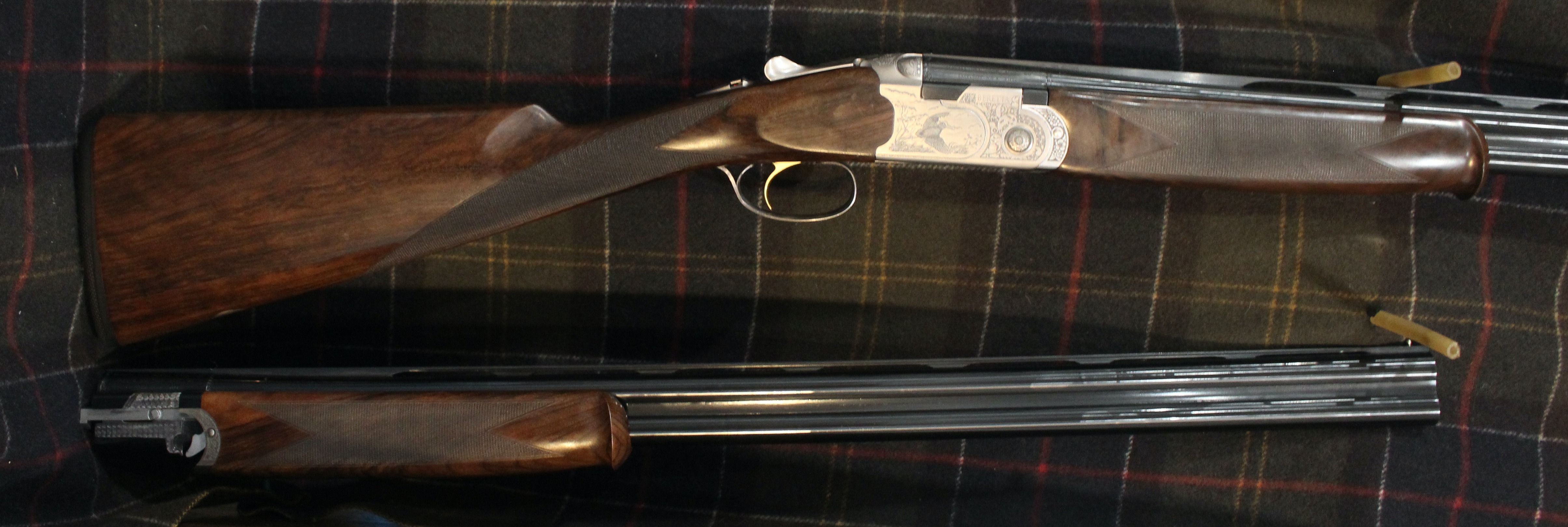 Silver Pigeon 3 Signature Deluxe Field Combo - 20 & 28 gauge with 28" barrels, Deluxe engraving, automatic field safety, upgraded EELL wood with Straight English grip, comes in Beretta case with 5 flush Optima HP choke tubes for each gauge.