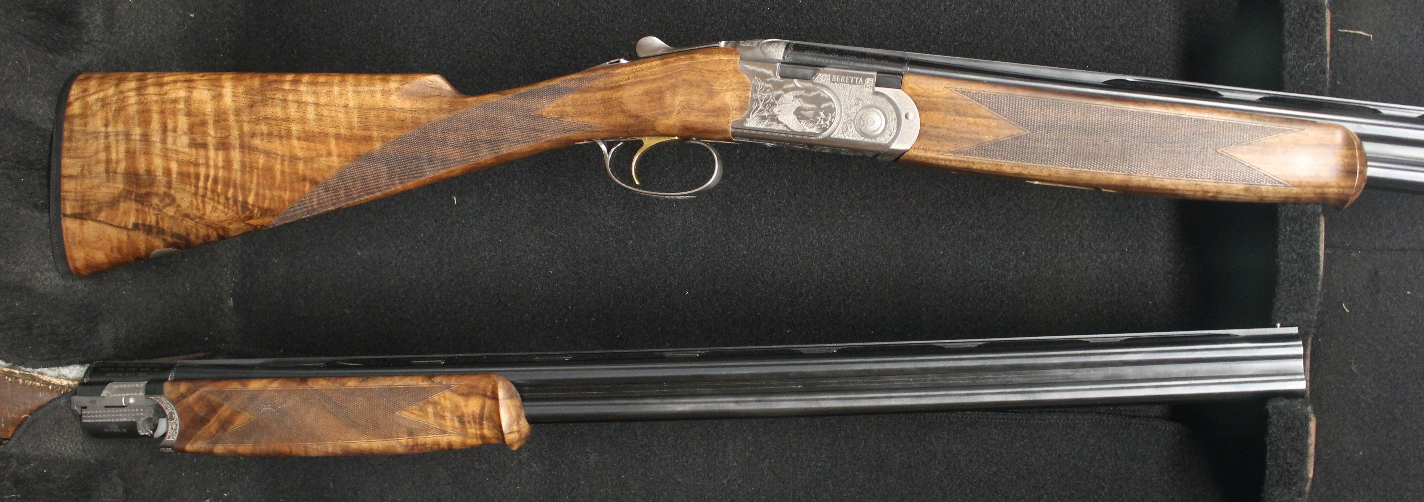 Silver Pigeon 3 Signature Deluxe Field Combo - 20 & 28 gauge with 28" barrels, Deluxe engraving, automatic field safety, upgraded EELL wood with Straight English grip, comes in Beretta case with 5 flush Optima HP choke tubes for each gauge.