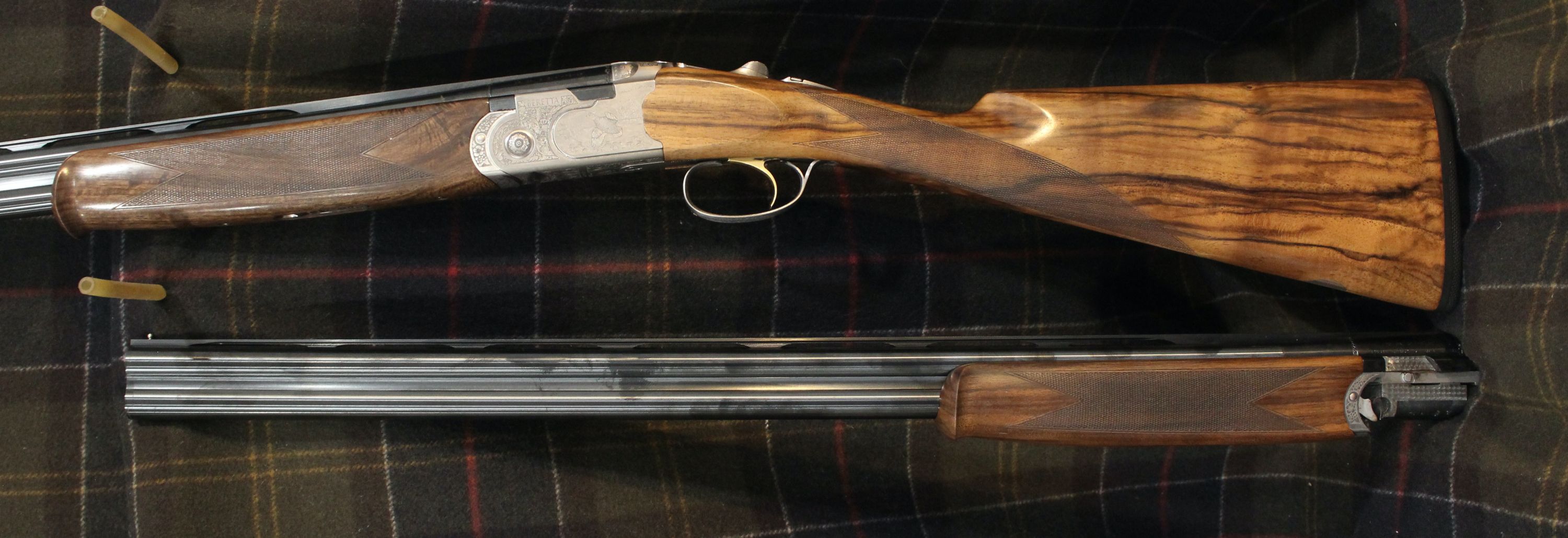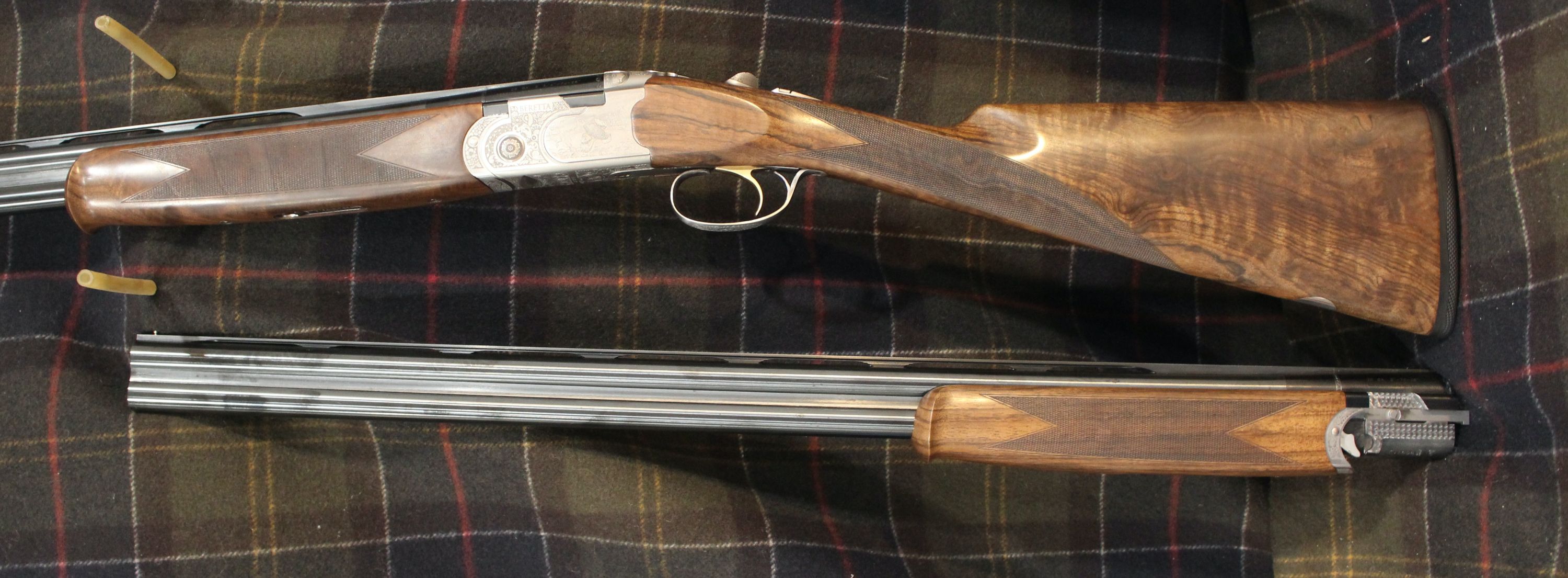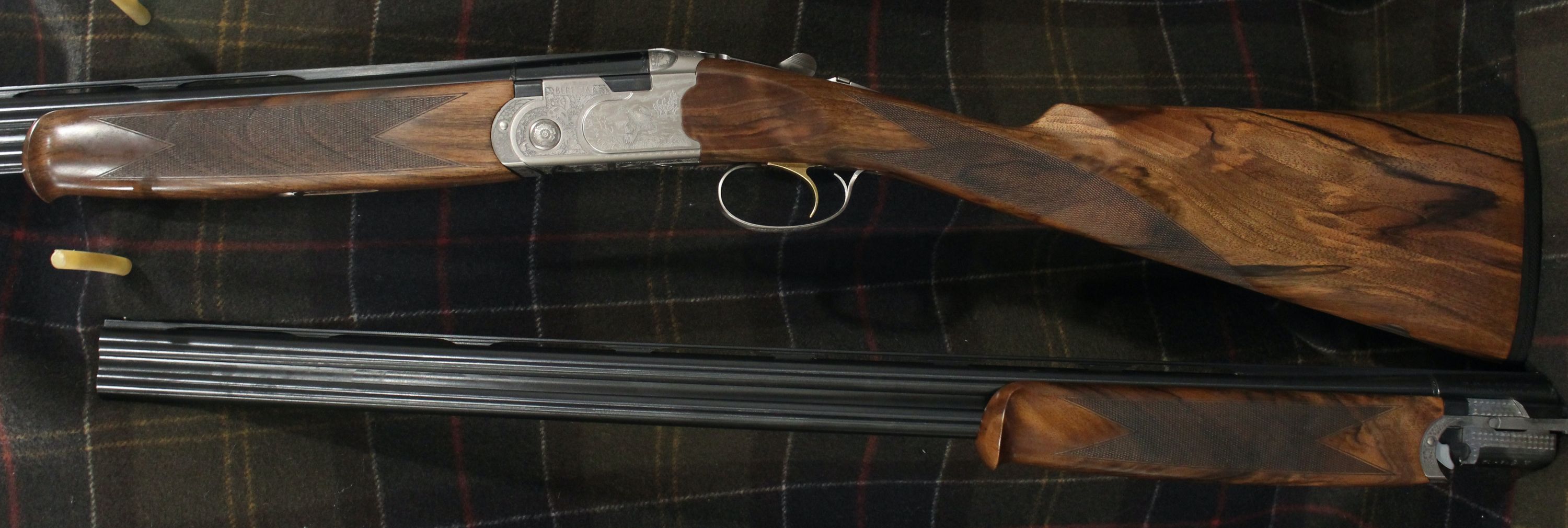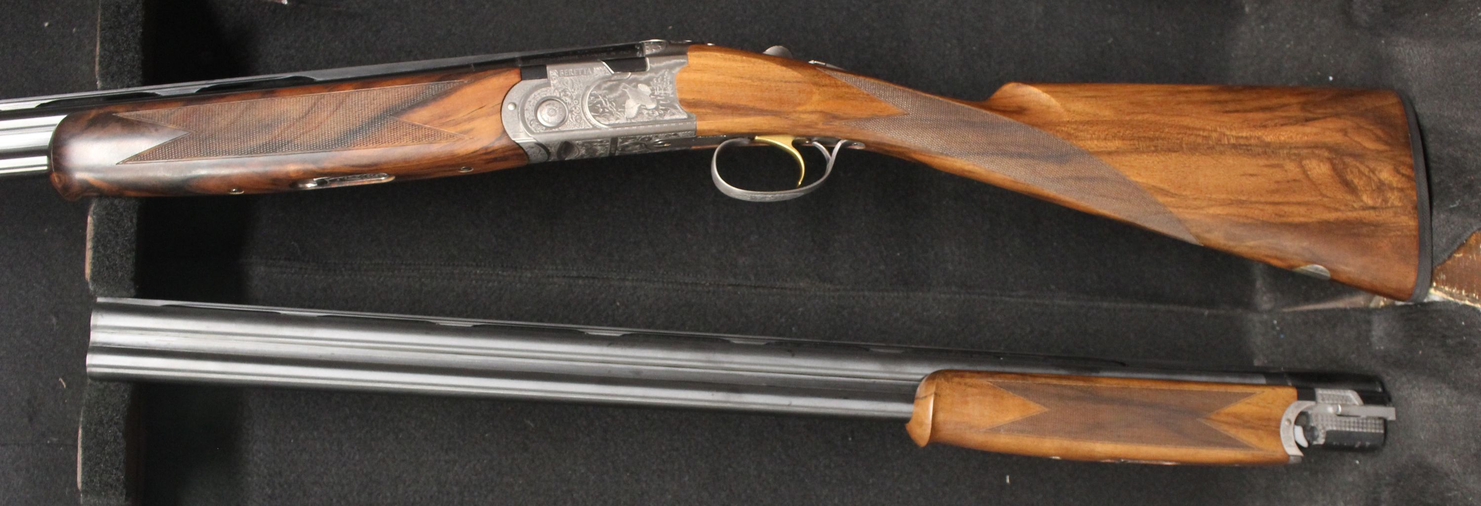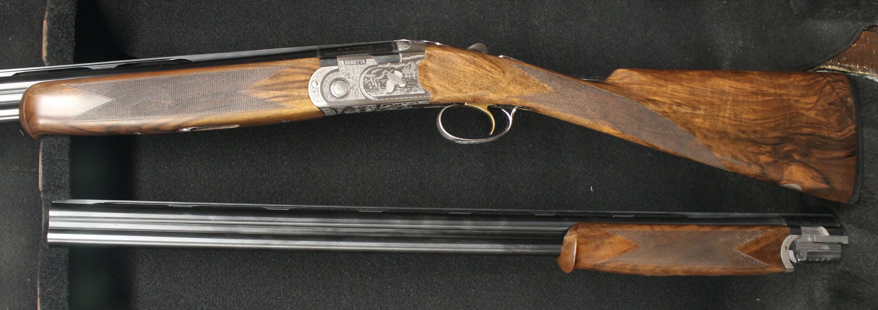 Silver Pigeon 3 Signature Deluxe Field Combo - 20 & 28 gauge with 28" barrels, Deluxe engraving, automatic field safety, upgraded EELL wood with Straight English grip, comes in Beretta case with 5 flush Optima HP choke tubes for each gauge.