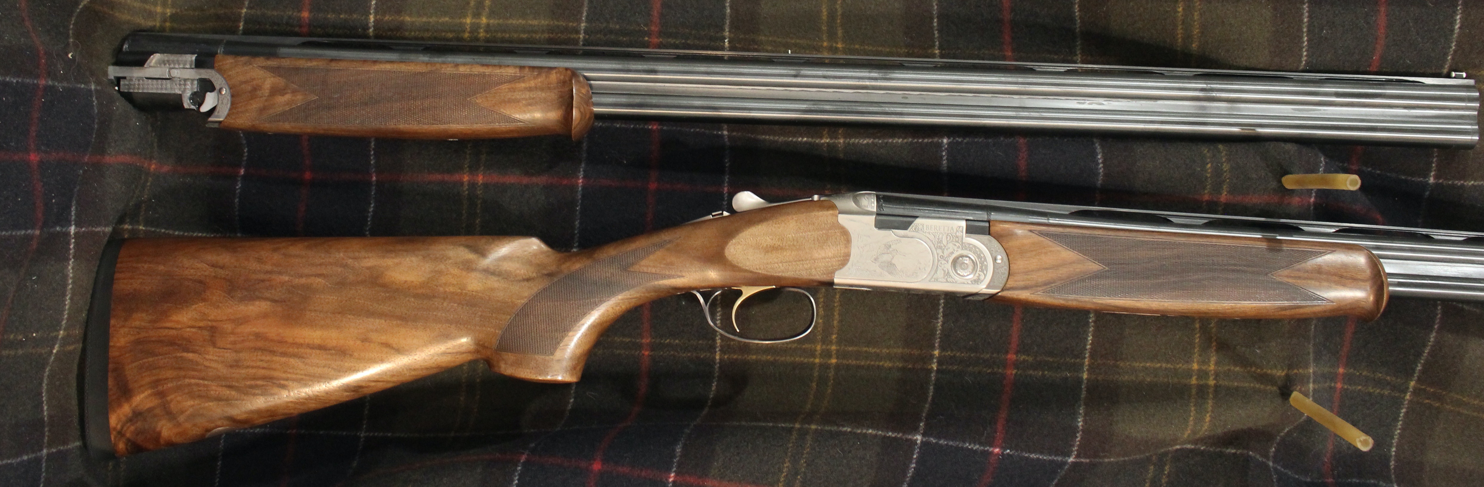Silver Pigeon 3 Signature Deluxe Sporting Combo - 20 & 28 gauge with 32" wide rib sporting barrels, Deluxe engraving, front and middle beads, upgraded EELL wood, comes in Beretta case with 5 Optima HP flush choke tubes for each gauge (F,IM,M,IC,CYL).