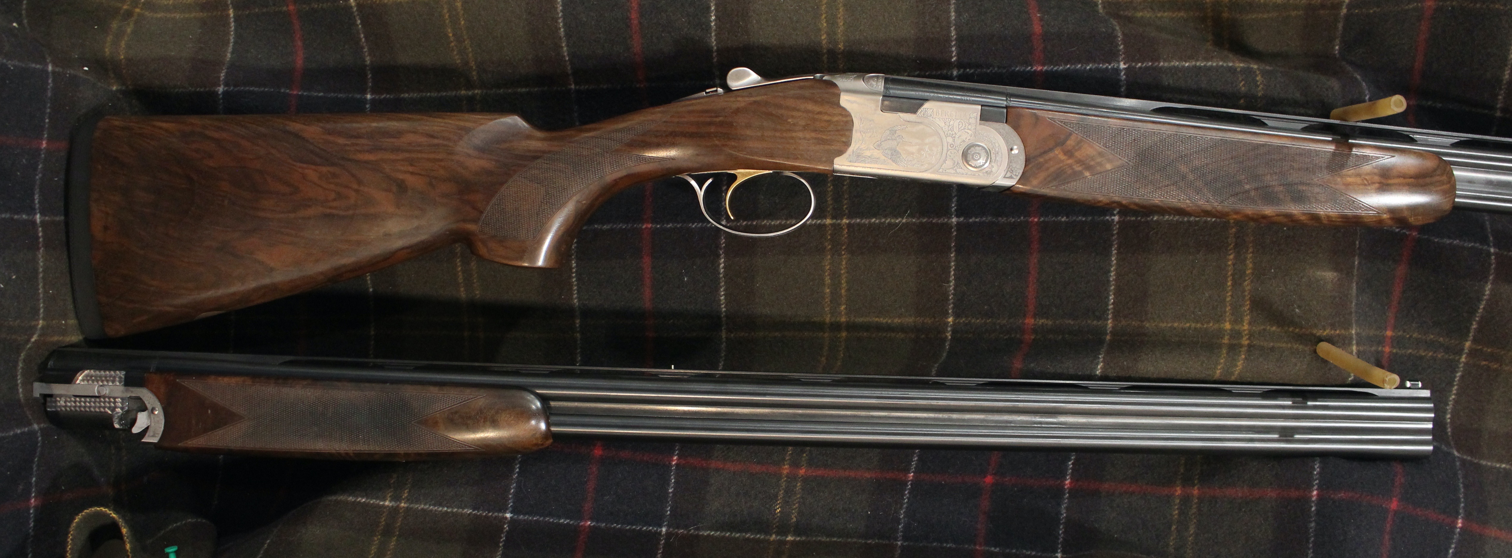 Silver Pigeon 3 Signature Deluxe Sporting Combo - 28 & 410 gauge with 30" barrels, Deluxe engraving, manual safety, upgraded EELL wood, comes in Beretta case with 5 flush Optima HP choke tubes for the 28ga and 5 flush Mobil chokes for the 410.