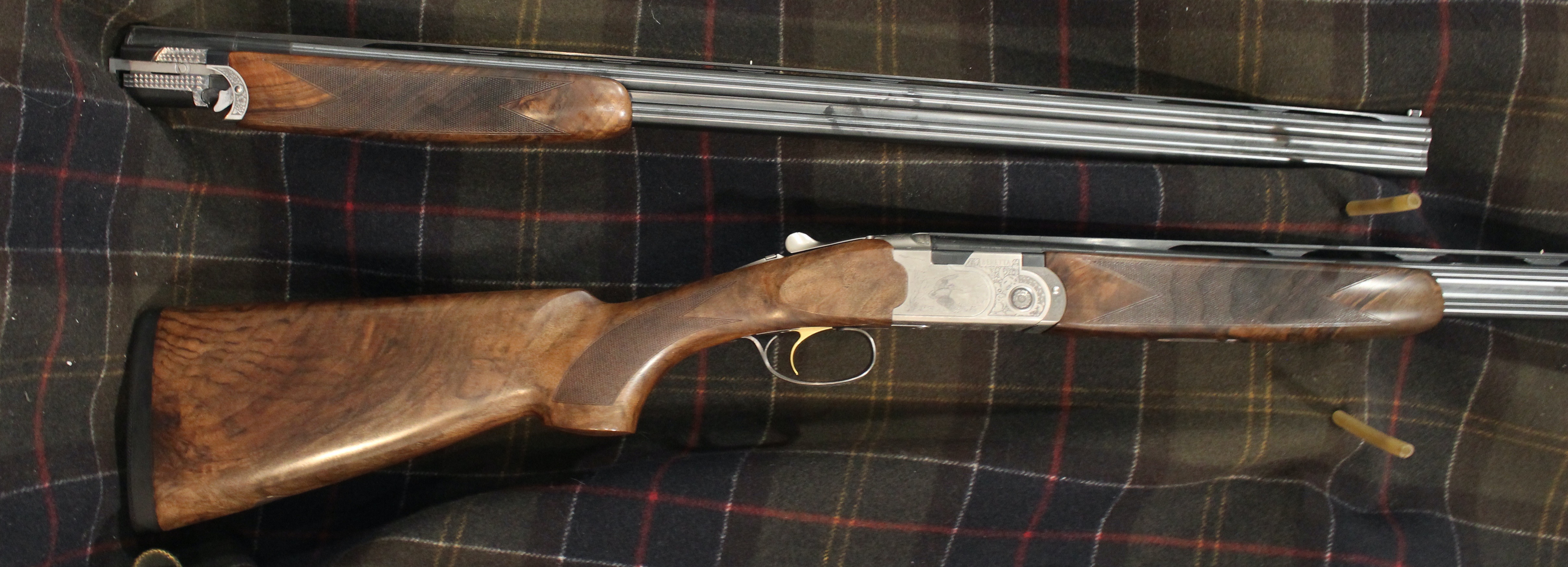 Silver Pigeon 3 Signature Deluxe Sporting Combo - 28 & 410 gauge with 30" barrels, Deluxe engraving, manual safety, upgraded EELL wood, comes in Beretta case with 5 flush Optima HP choke tubes for the 28ga and 5 flush Mobil chokes for the 410.