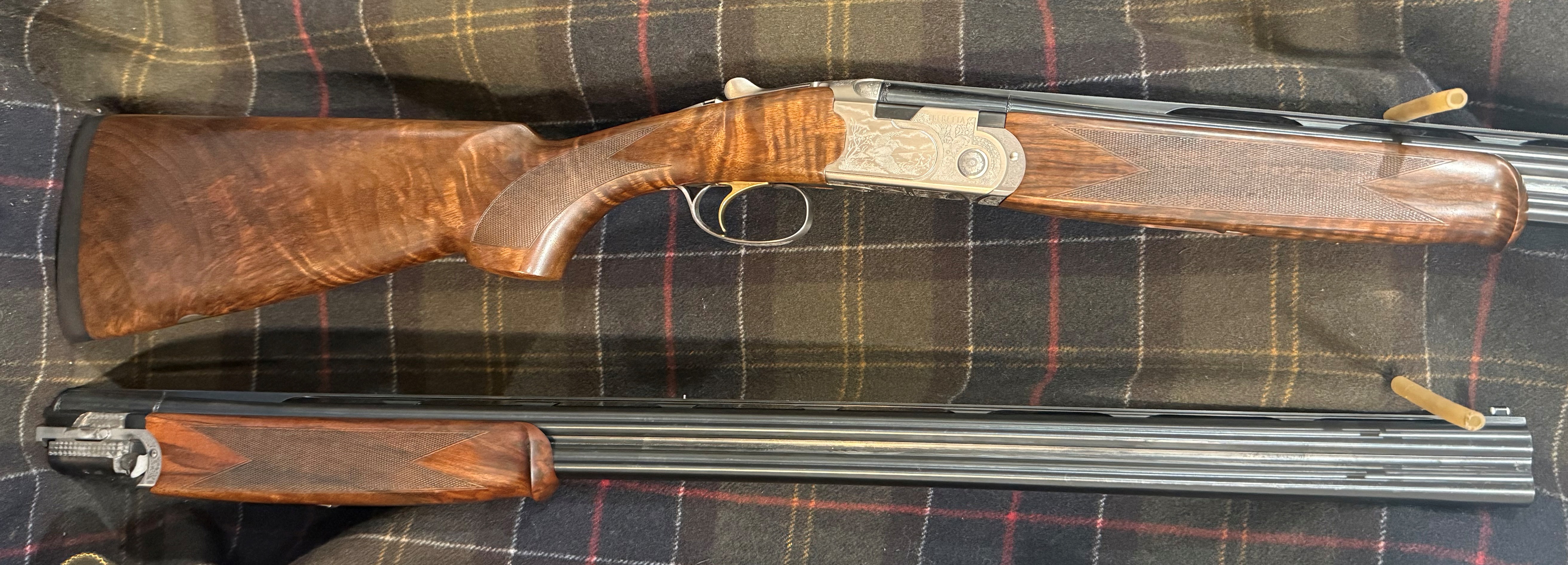 Silver Pigeon 3 Signature Deluxe Sporting Combo - 20 & 28 gauge with 30" wide rib Optima HP sporting barrels, Deluxe engraving, front and middle beads, upgraded EELL wood, comes in Beretta case with 5 flush Optima HP choke tubes for each gauge (F,IM,M,IC,CYL).