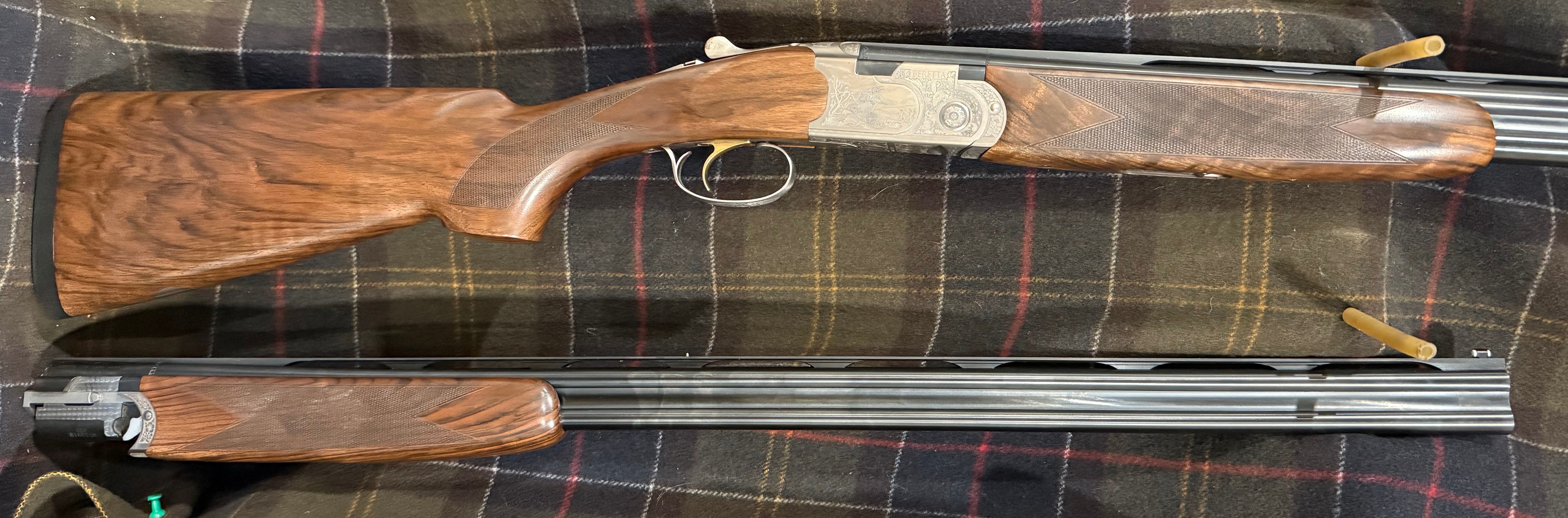 Silver Pigeon 3 Signature Deluxe Sporting Combo - 28 & 410 gauge with 30" barrels, Deluxe engraving, manual safety, upgraded EELL wood, comes in Beretta case with 5 flush Optima HP choke tubes for the 28ga and 5 flush Mobil chokes for the 410.