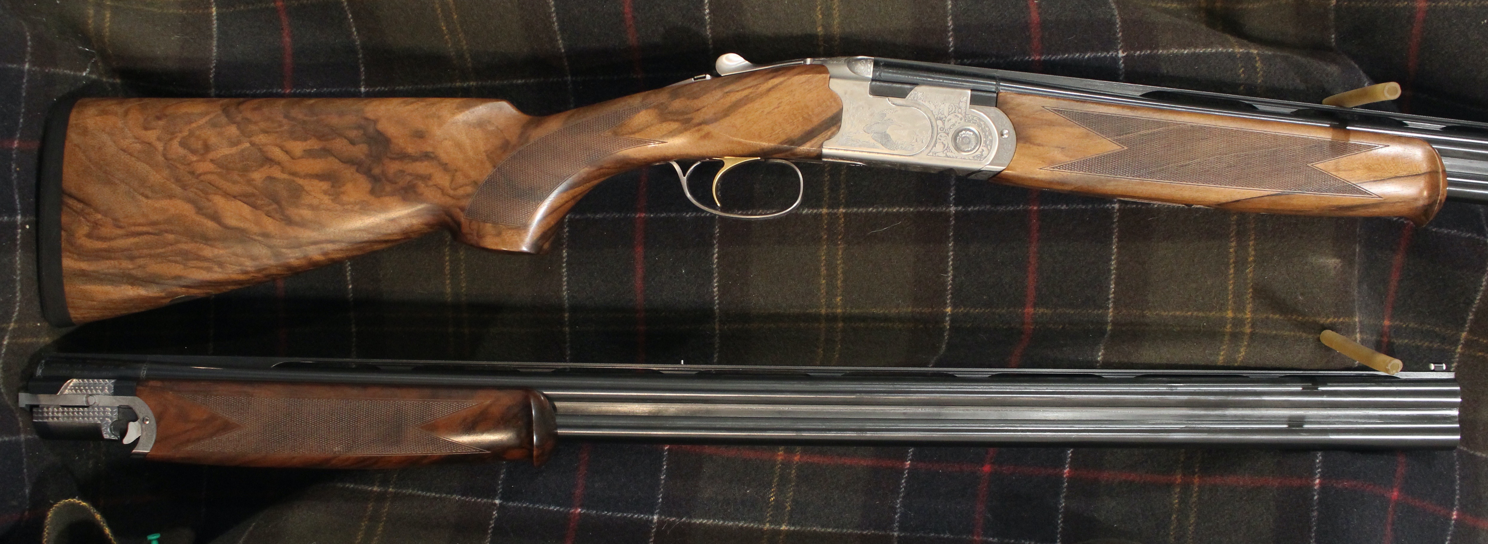 Silver Pigeon 3 Signature Deluxe Sporting Combo - 20 & 28 gauge with 30" wide rib Optima HP sporting barrels, Deluxe engraving, front and middle beads, upgraded EELL wood, comes in Beretta case with 5 flush Optima HP choke tubes for each gauge (F,IM,M,IC,CYL).