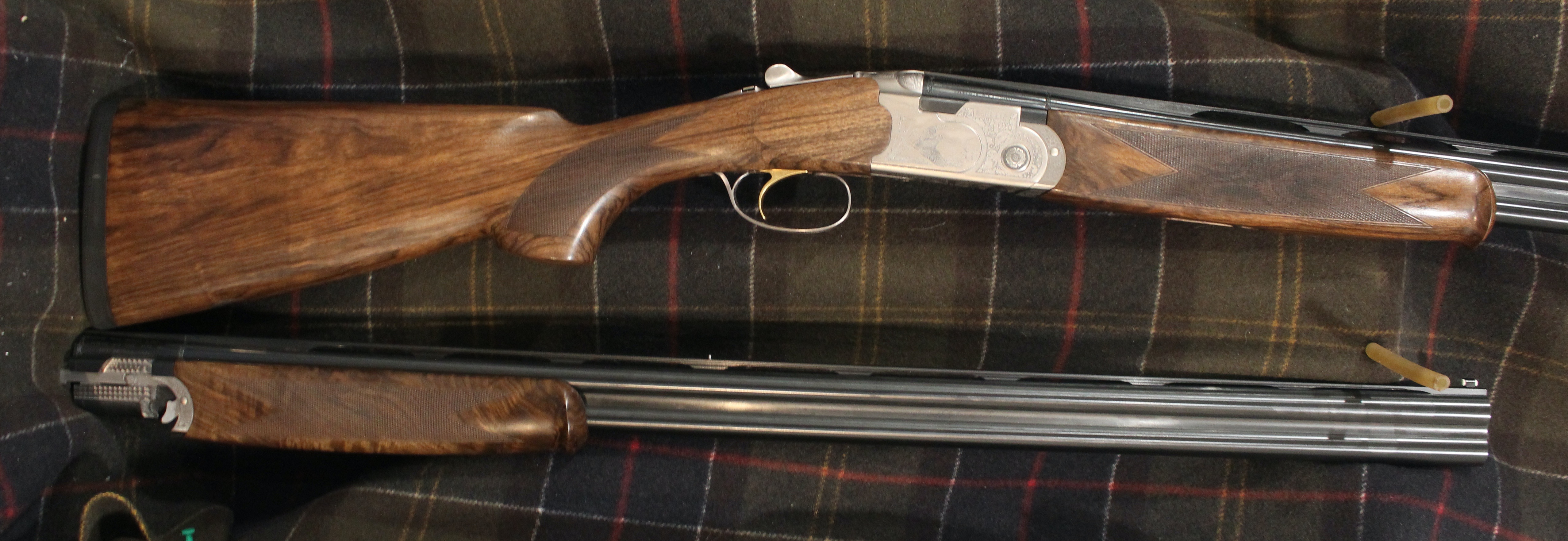 Silver Pigeon 3 Signature Deluxe Sporting Combo - 20 & 28 gauge with 30" wide rib Optima HP sporting barrels, Deluxe engraving, front and middle beads, upgraded EELL wood, comes in Beretta case with 5 flush Optima HP choke tubes for each gauge (F,IM,M,IC,CYL).