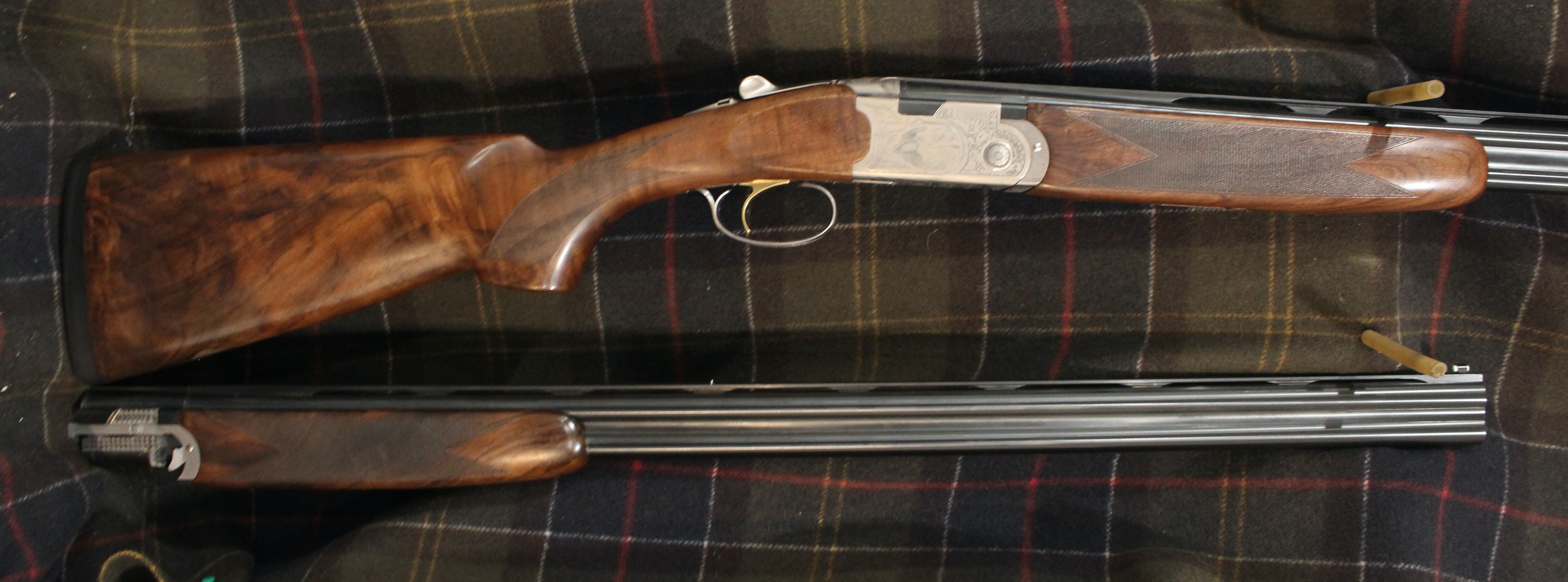 Silver Pigeon 3 Signature Deluxe Sporting Combo - 28 & 410 gauge with 30" barrels, Deluxe engraving, manual safety, upgraded EELL wood, comes in Beretta case with 5 flush Optima HP choke tubes for the 28ga and 5 flush Mobil chokes for the 410.