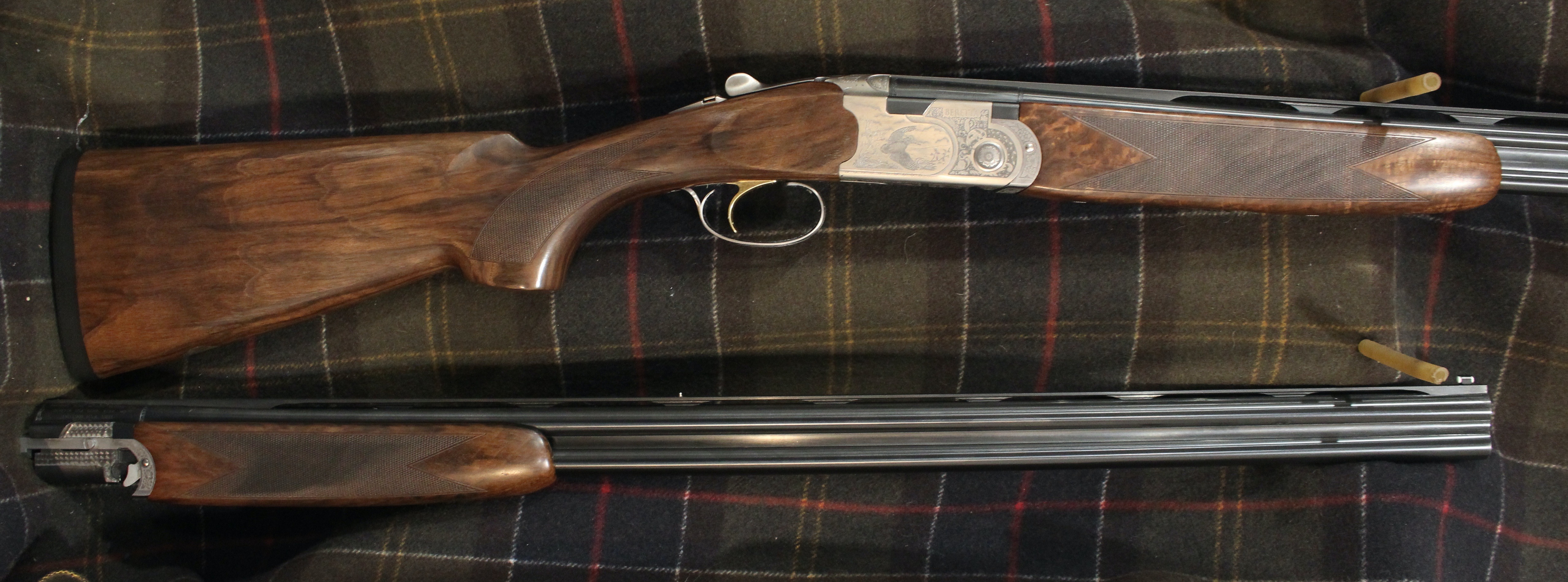Silver Pigeon 3 Signature Deluxe Sporting Combo - 28 & 410 gauge with 30" barrels, Deluxe engraving, manual safety, upgraded EELL wood, comes in Beretta case with 5 flush Optima HP choke tubes for the 28ga and 5 flush Mobil chokes for the 410.