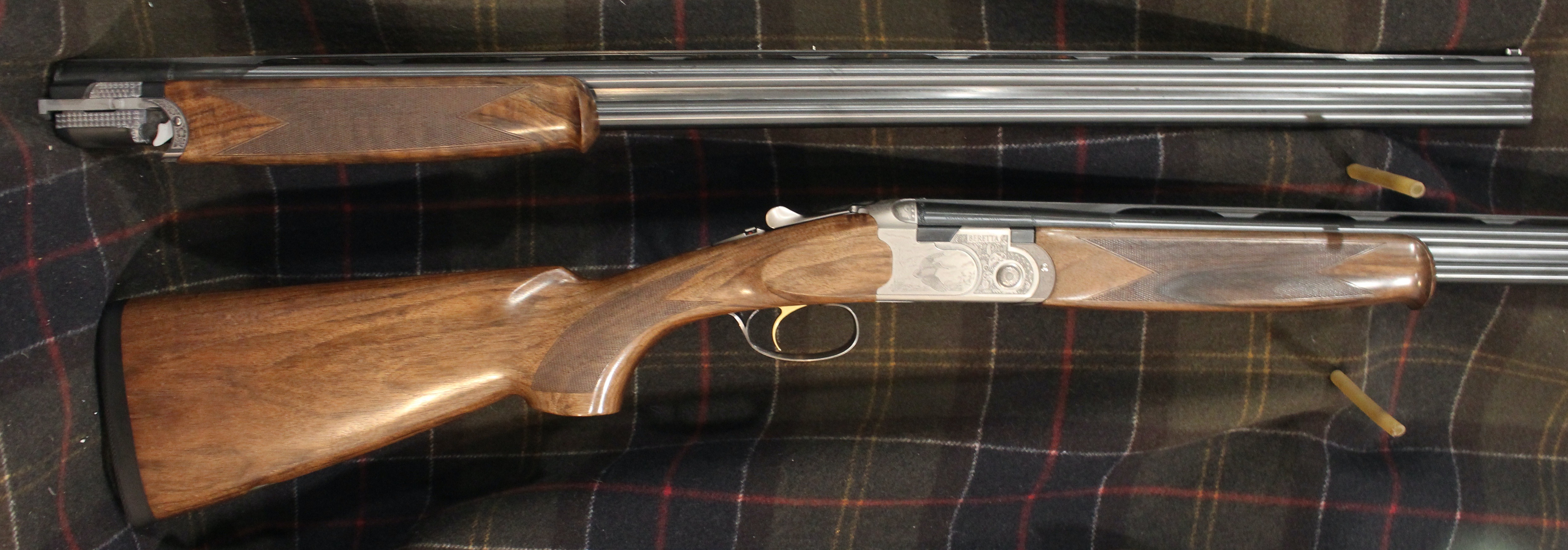 Silver Pigeon 3 Signature Deluxe Sporting Combo - 20 & 28 gauge with 32" wide rib sporting barrels, Deluxe engraving, front and middle beads, upgraded EELL wood, comes in Beretta case with 5 Optima HP flush choke tubes for each gauge (F,IM,M,IC,CYL).