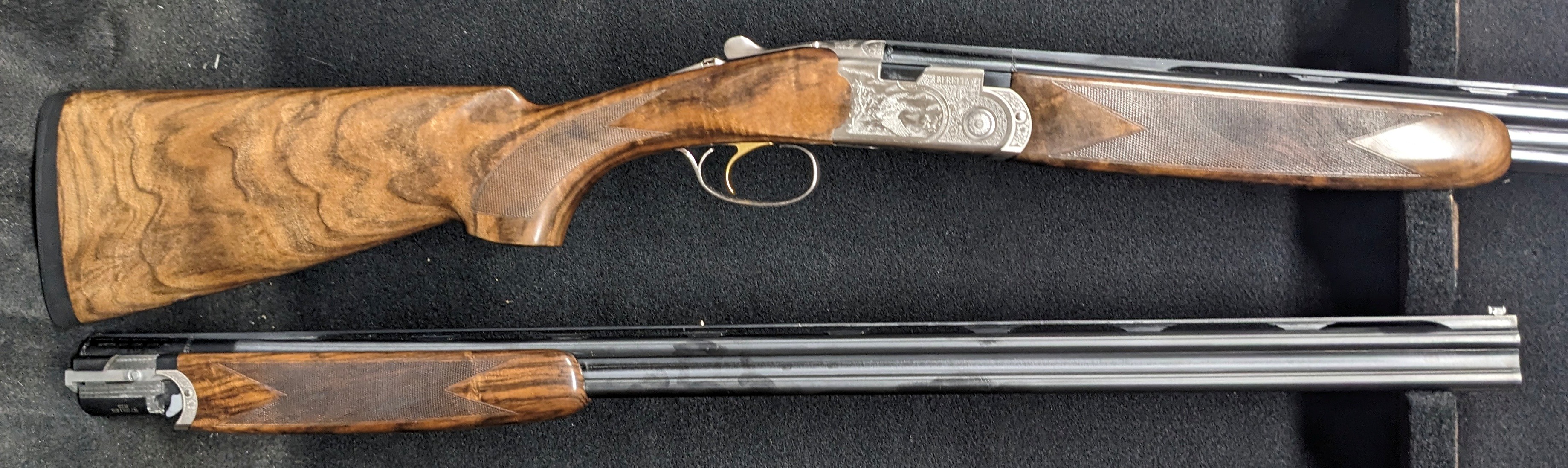Silver Pigeon 3 Signature Deluxe Sporting Combo - 28 & 410 gauge with 30" barrels, Deluxe engraving, manual safety, upgraded EELL wood, comes in Beretta case with 5 flush Optima HP choke tubes for the 28ga and 5 flush Mobil chokes for the 410.