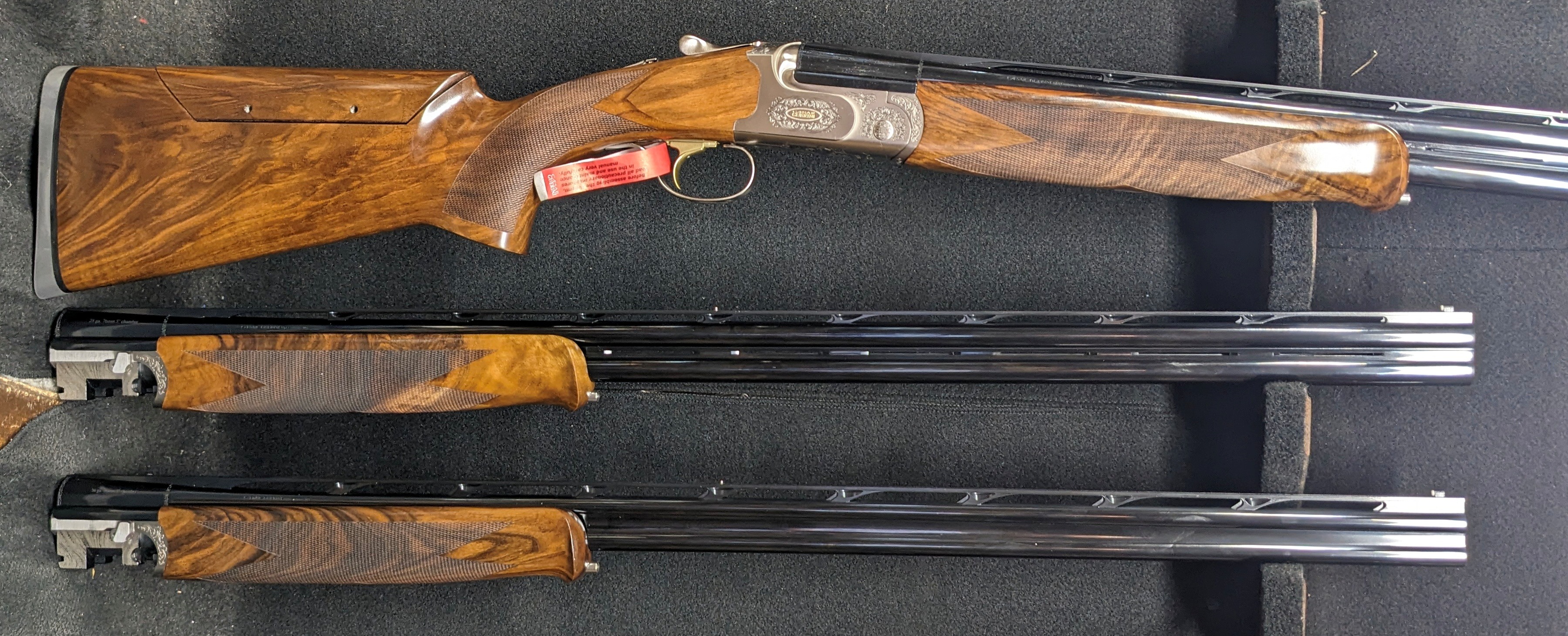 Caesar Guerini Summit Sporting 3 Barrel Combo set- 20 gauge, 28 gauge, 410 bore in 32" barrels, adjustable comb, includes 6 CCP extended choke tubes per barrel, comes in factory 3 barrel case.