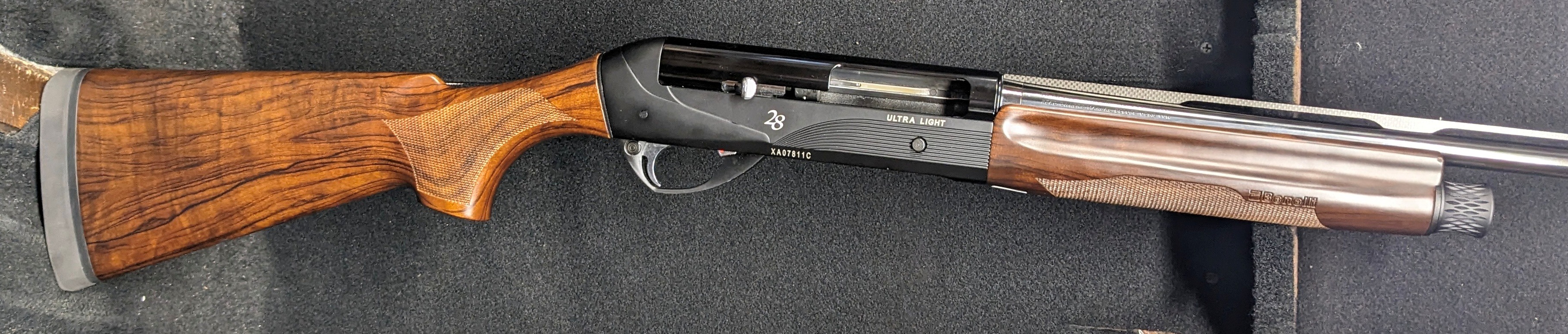 Benelli Ultralight - 28 gauge with 26" bbl. weighs only 5 lbs 6.5 ounces, comes in the Benelli case with choke tubes, 14 3/4" length of pull with kickeez pad, gun is in excellent condition, barely a handling mark.