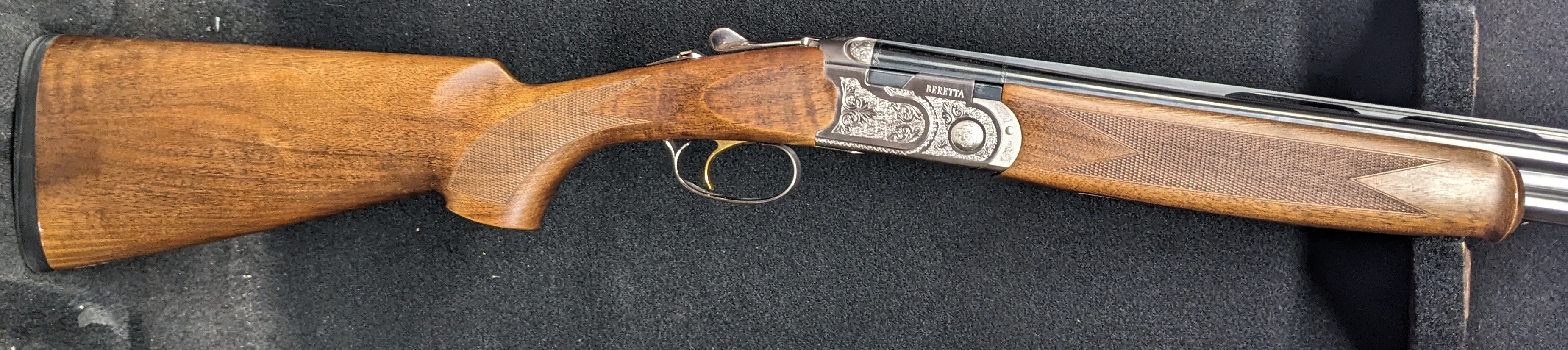 Beretta 686 Silver Pigeon 1 Field - 20 gauge with 28" mobil choke barrels, a few light handling marks on the wood, very nice condition, comes in the plastic case with 5 flush mobil choke tubes.