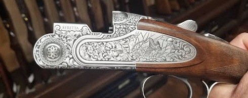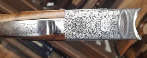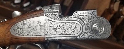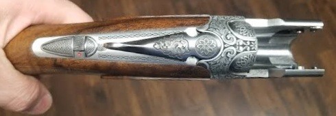 The full sideplates of the 687 EELL feature a super-fine classic game scene, and are enhanced by intricately detailed motifs of branches, leaves and flowers which extend to the trigger plate, trigger guard and fore-end iron lever. The proportions of the engraving blend wonderfully with the dimensions of the shotgun, giving you the sense of a work of art within a work of art. The stock is a classic semi-beavertail, with premium-quality European walnut and a newly designed fine-line checkering. An oval brass shield, inlaid on the stock, will allow you to personalize your gun with initials or a family crest, while the handsome and durable carrying case will protect the shotgun for generations to come.