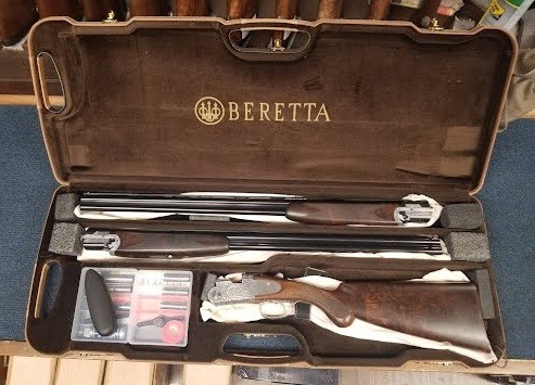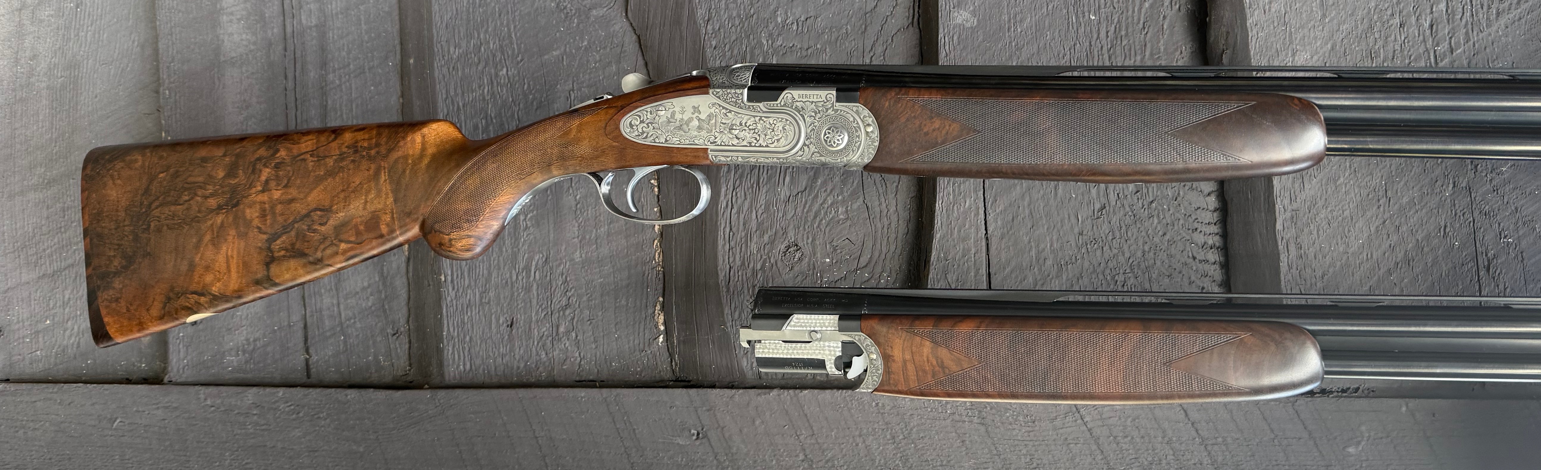 BERETTA 687 EELL FIELD CLASSIC 20ga / 28ga 28" combo with POW and Game Scene engraving. Made in Beretta's premium shop, it features side plates with hand-chased engraving, Prince of Wales grip, long fitted tang, and fine checkering. Dimensions are 1 3/8" X 2 5/16" with 14 5/8" LOP, weight is 6 lbs 2 oz. Comes in the original premium Beretta case with 5 flush optima HP chokes per gauge. Gun is in great condition, barely fired.