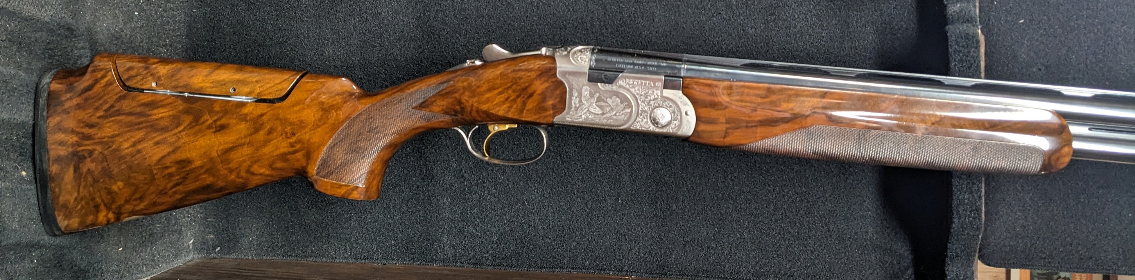 JEG Signature Beretta 687 Silver Pigeon III All Around - 12 gauge with 32" Optima bore barrels, monte carlo style stock with added adjsutable comb, glossy finish added to the wood, game scene engraved receiver, comes in the Beretta case with 6 extended optima choke tubes, gun is in very good shape with just some light handling marks on the wood.