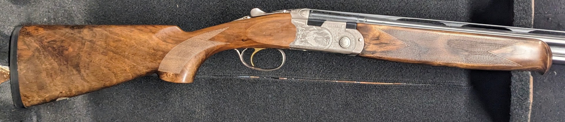 Beretta JEG Signature Series Silver Pigeon 3 Sporting - 28 gauge with 32" sporting barrels, wider rib with front and mid beads, manual safety, upgraded EELL wood, built on the 20ga frame, one of our signature combos but the 20ga barrels are no longer with the set, this is a new gun but has just a few little scratches at the end of the barrels.