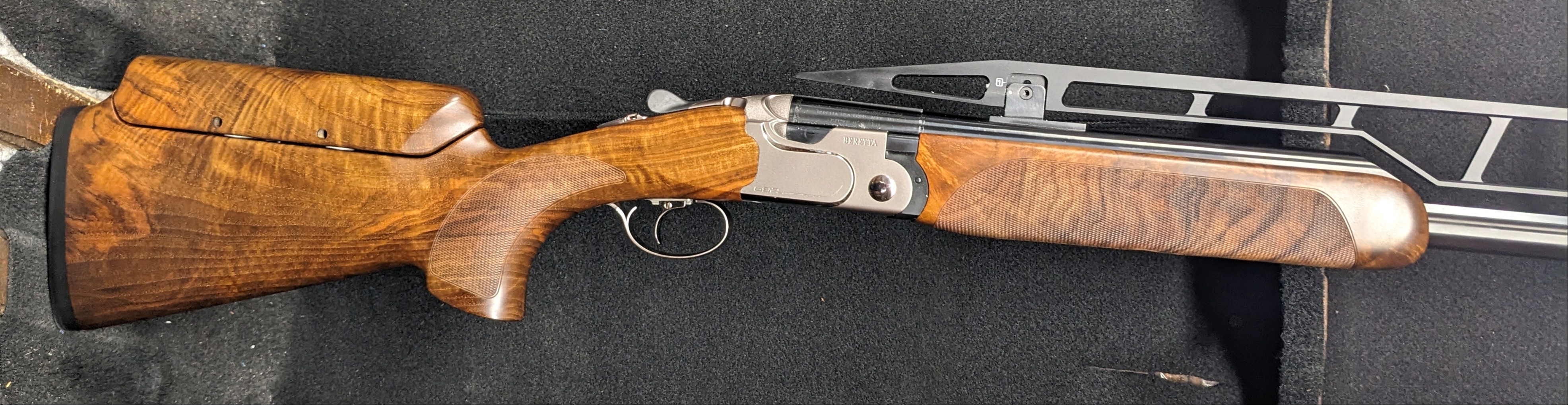 Beretta 692 Trap Unsingle - 12 gauge with 34" Steelium Plus barrel, B-fast adjustable rib and B-fast adjustable comb, comes in the Beretta case with 4 flush optima hp choke tubes, gun is in excellent condition with just a few little handling marks on a beautiful piece of wood.