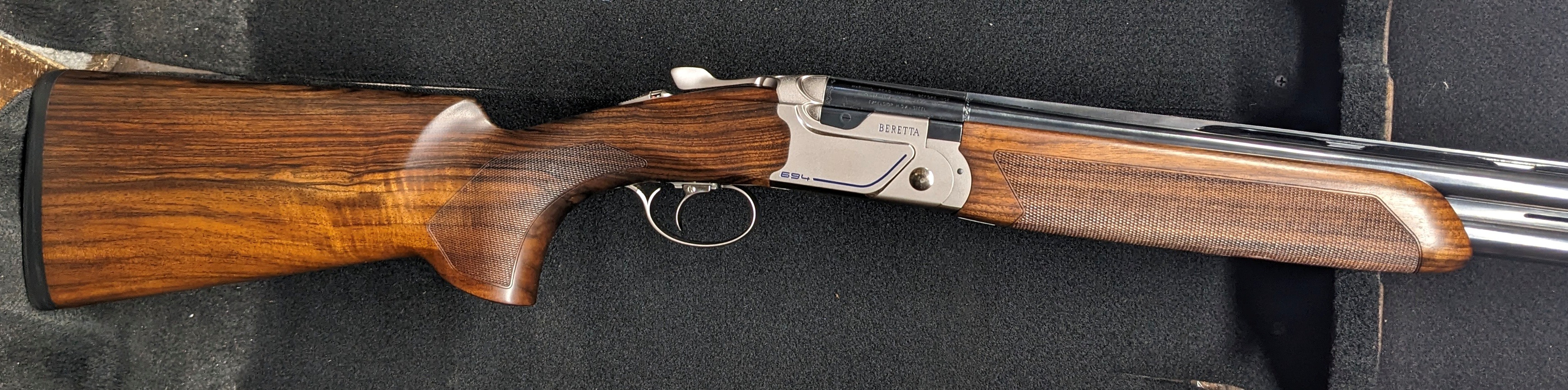 Beretta 694 Sporting - 12 gauge with 30" Steelium plus barrels, trigger adjusts for LOP, fixed 35/50 drop stock, comes in the Beretta case with 5 optima HP extended choke tubes, gun is in great shape, just some handling marks on the wood.