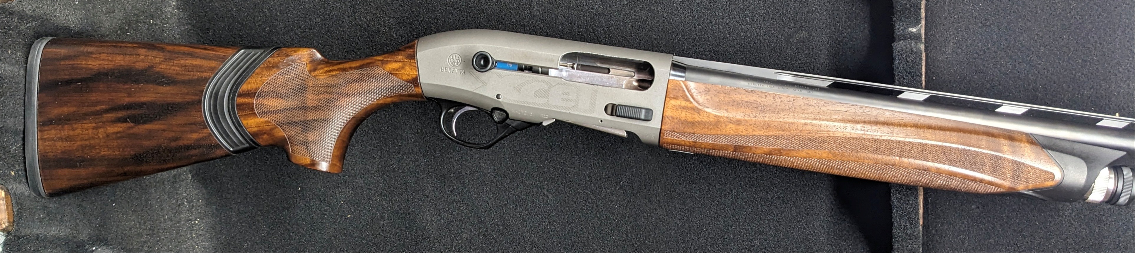 Beretta A400 Xcel Sporting - 12 gauge, 30" Optima HP barrel, latest version with grey receiver and kickoff recoil reducer built into the stock behind the pistol grip, some scratches on the receiver and a few light handling marks on the stock, otherwise very good condition. Comes in a Beretta plastic case.