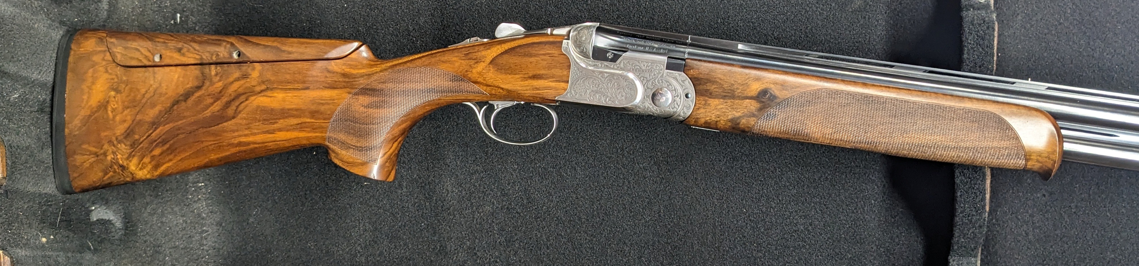 Beretta DT-11 Luxury Sporting - 12 gauge with 32" Steelium Pro barrels and lengthened forcing cones, factory adjustale comb, scroll engraved receiver, detachable trigger, comes in the Beretta case with extended optima HP choke tubes, a few light handling marks on the wood, gun is in great shape.