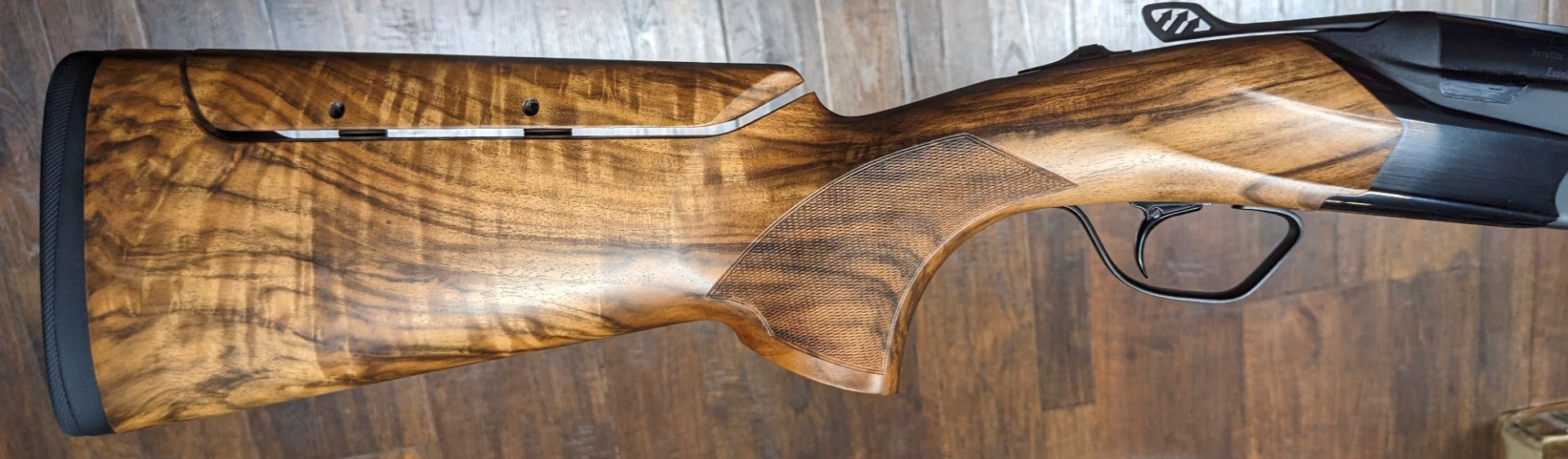 The SL2 Sporting is Beretta's next great sporter. Graphite grey receiver has an anti-glare treatment with lower 3 Arrows top lever, a variation of the SO10 Boss-type locking system, and detachable leaf spring trigger group like the DT11 series. This sporter comes with Grade 4 walnut woodset with handmade checkering, finger groove forend, and B-fast adjustable comb. Gun comes with Stellium Pro X barrels and extended OXCP choke system. Comes cased.